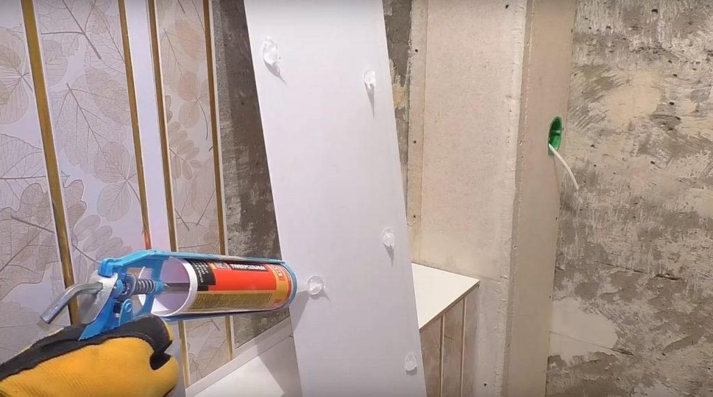 La forma más fácil de tomar el mínimo tiempo y esfuerzo es pegar los paneles con clavos líquidos. En este caso, el material se fija directamente a la pared, lo que ahorra el máximo espacio. Y esta es una ventaja importante para una habitación tan pequeña como un baño. La única condición es que la base debe ser lo más uniforme posible. Se permiten rugosidades hasta un máximo de 5 mm. De lo contrario, será imposible lograr una adhesión total a la pared. Las láminas en este lugar se doblarán y se despegarán muy rápidamente.