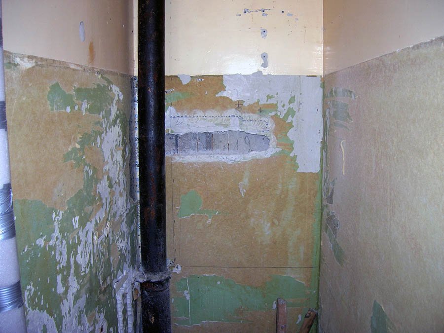 Estamos preparando la fundación. Limpiamos la pared de suciedad, polvo, residuos de pegamento, papel de pared viejo, manchas de grasa.