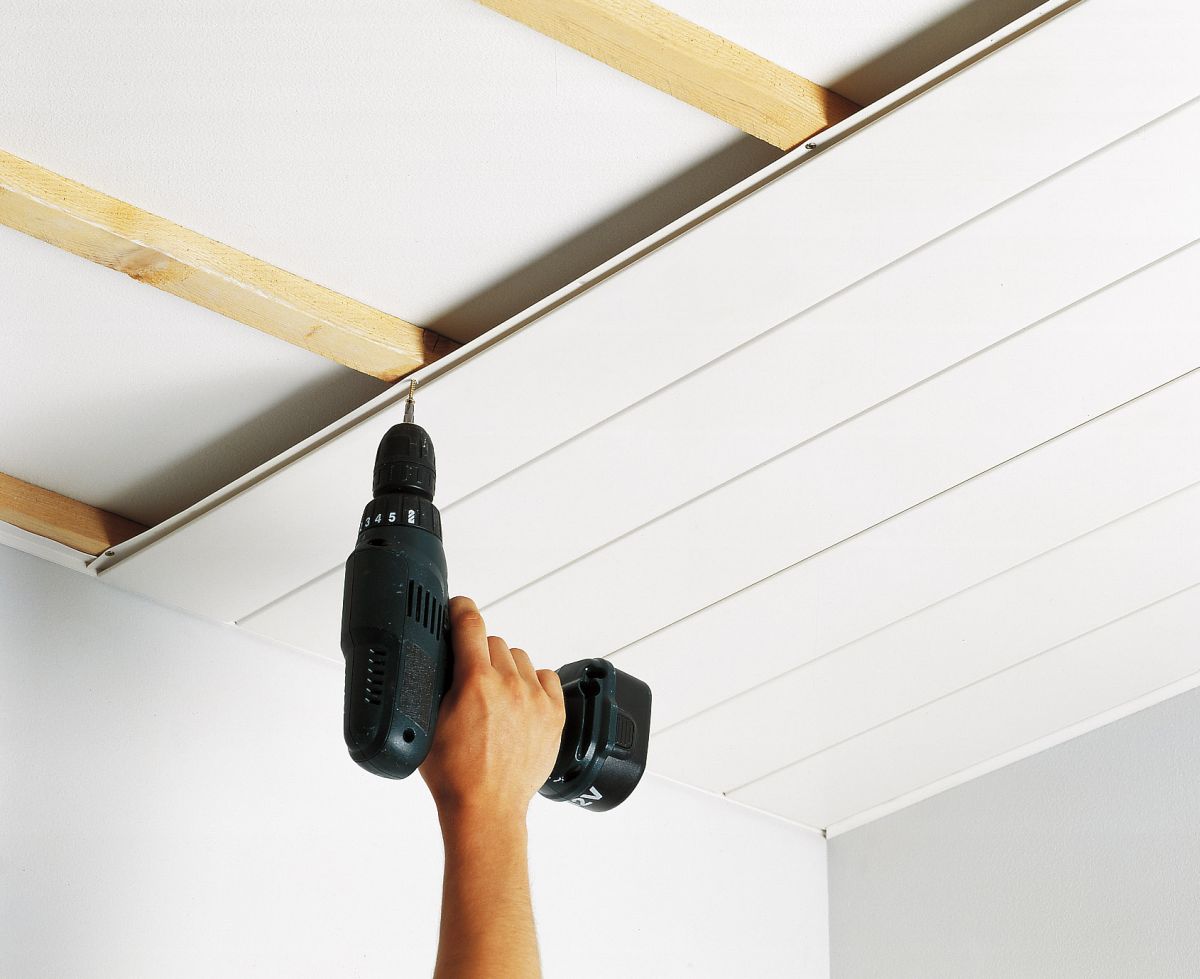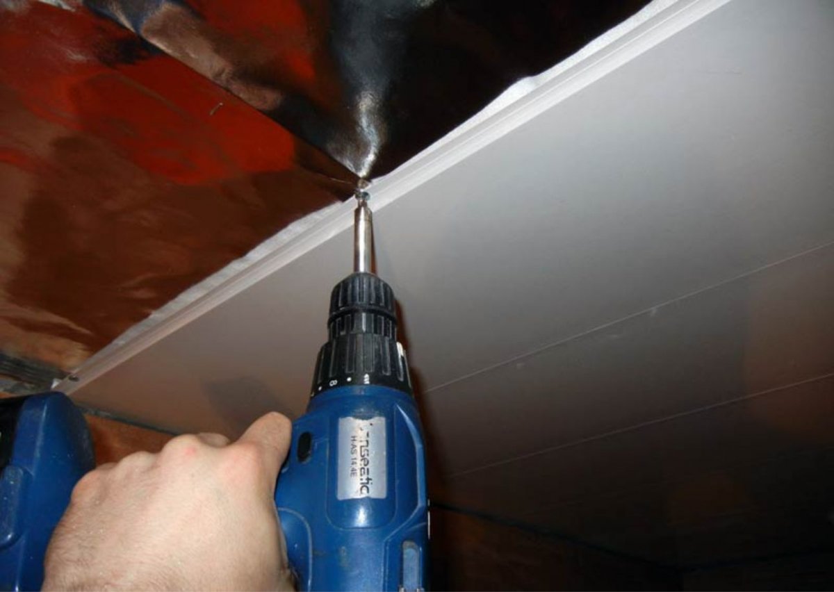 Conozcamos los detalles de la instalación de paneles de PVC en el techo. Lo primero y más fundamental para decidir es la distancia entre el revestimiento y el techo. Al tomar una decisión, considere el tipo de accesorios de iluminación que tiene la intención de instalar. Si las luminarias están integradas, deje al menos 10-15 cm. Se crea un espacio detrás de los paneles donde se ocultará todo el cableado. La ubicación de los focos se debe anotar con un lápiz. Después de eso, corte los agujeros e instale las bases de la lámpara.