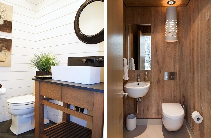 Si no está confundido por la pérdida de área utilizable, elija el método de fijación a la caja. Esto permitirá ocultar las comunicaciones no estéticas y complementará el diseño del "pastel" de revestimiento con calor y materiales impermeabilizantes. Si el inodoro se combina con el baño, aumenta la humedad en la habitación. Por lo tanto, es mejor elegir perfiles de metal o plástico para crear el marco. Si aún decide optar por la madera, trate las superficies con compuestos a prueba de humedad, antisépticos y contra incendios y, finalmente, píntelas.