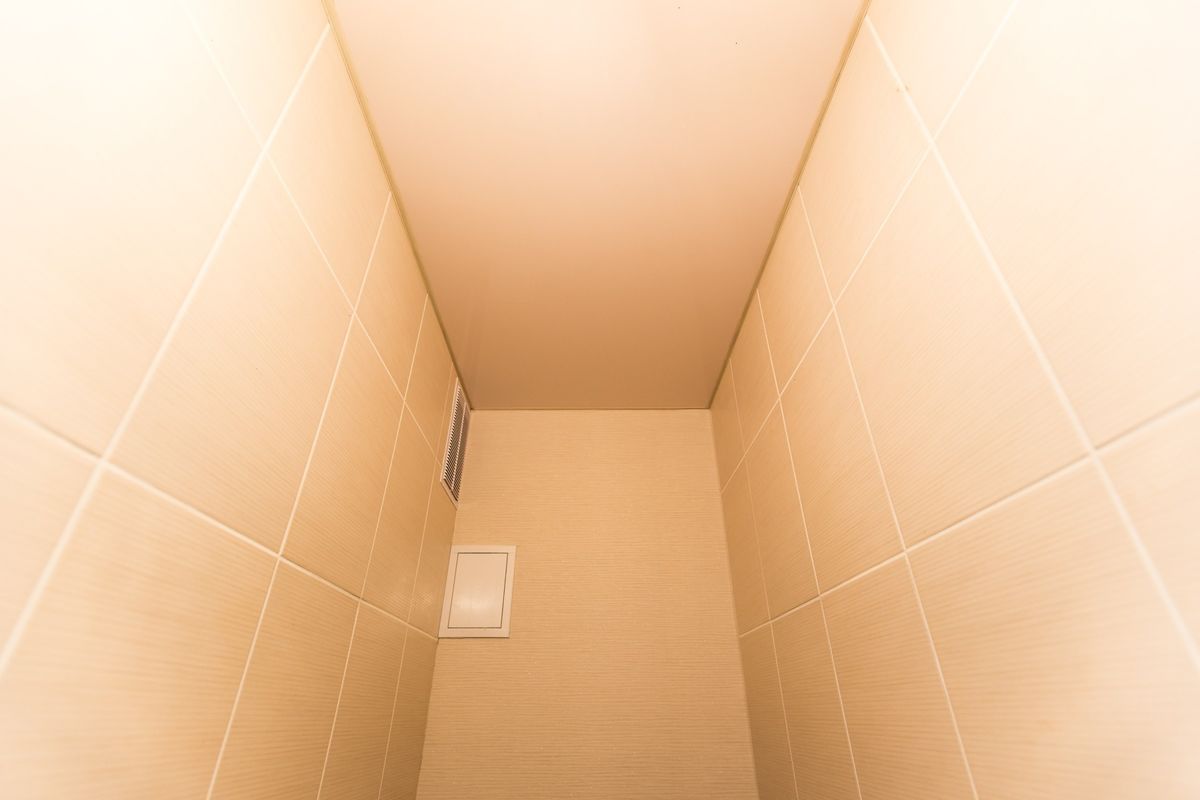 Los paneles de espuma son un techo de inodoro resistente a la humedad y de bajo costo.Las placas livianas se pegan a sustratos dilapidados después de quitar el acabado anterior, no puede alinear las ranuras pequeñas y abultadas. El material es fácil de limpiar; está pintado durante reparaciones repetidas.