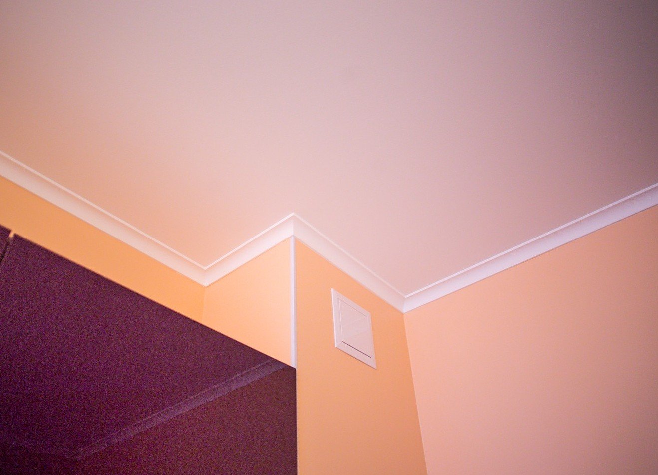 Menos: la superficie detrás de la tela de PVC está mal ventilada. Para protegerse contra el moho, el techo debe tratarse con antisépticos, biocidas.
