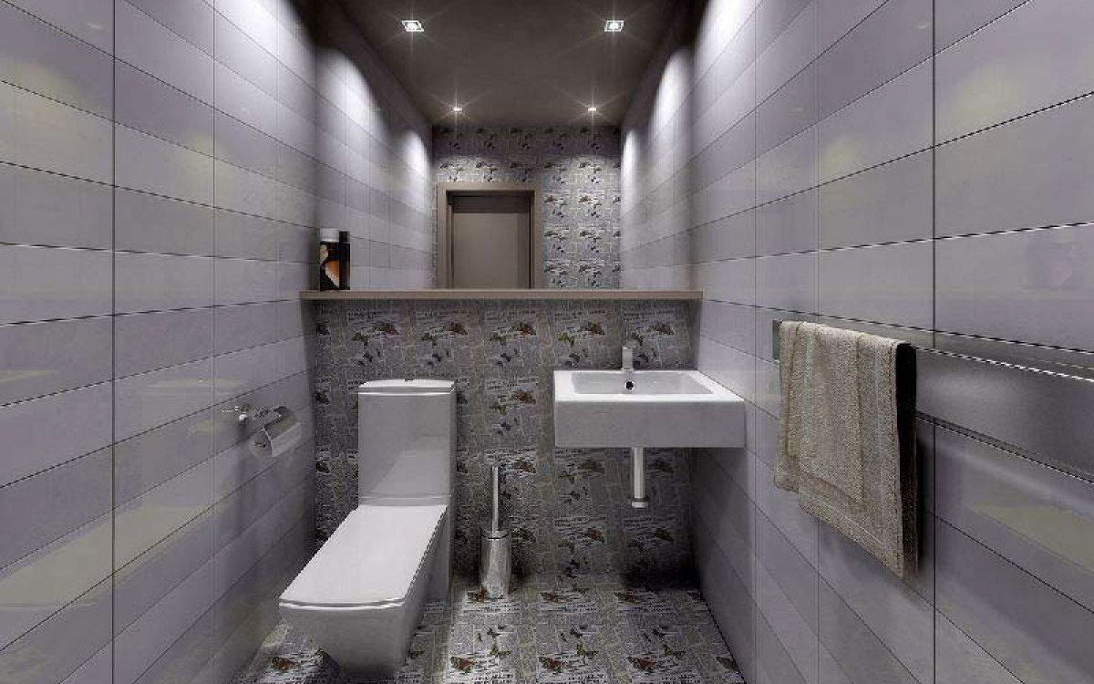 Con la ayuda de las luces, ajustan el espacio. La luz brillante se refleja en los materiales brillantes y agrega volumen visualmente. La pared trasera iluminada ensancha el inodoro. No habrá estanqueidad en el espacio si se instalan focos en una de las superficies laterales. Para reducir la altura de la habitación, el flujo de luz desde el techo se dirige a las paredes, para aumentarlo se hace al revés. En el baño, la iluminación debe ser moderadamente brillante, es desagradable estar en un área estrecha y oscura, especialmente para los niños. Bastan uno o dos apliques pequeños en la pared o focos a lo largo del perímetro del techo. En una habitación con una altura de más de 3 metros, se monta una lámpara colgante en el techo. En el baño combinado, el área cerca del espejo, el lavabo está iluminado, se instalan plafones semi herméticos y apliques con vidrio esmerilado blanco.