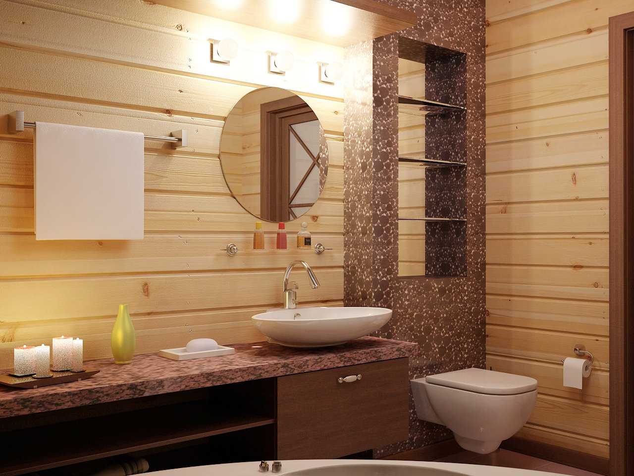 Para terminar el baño combinado, el árbol se barniza con propiedades repelentes al agua, el barnizado se repite después de 5-6 años. Las paredes de madera durante mucho tiempo conservarán su aspecto original en el baño con una buena ventilación incorporada.