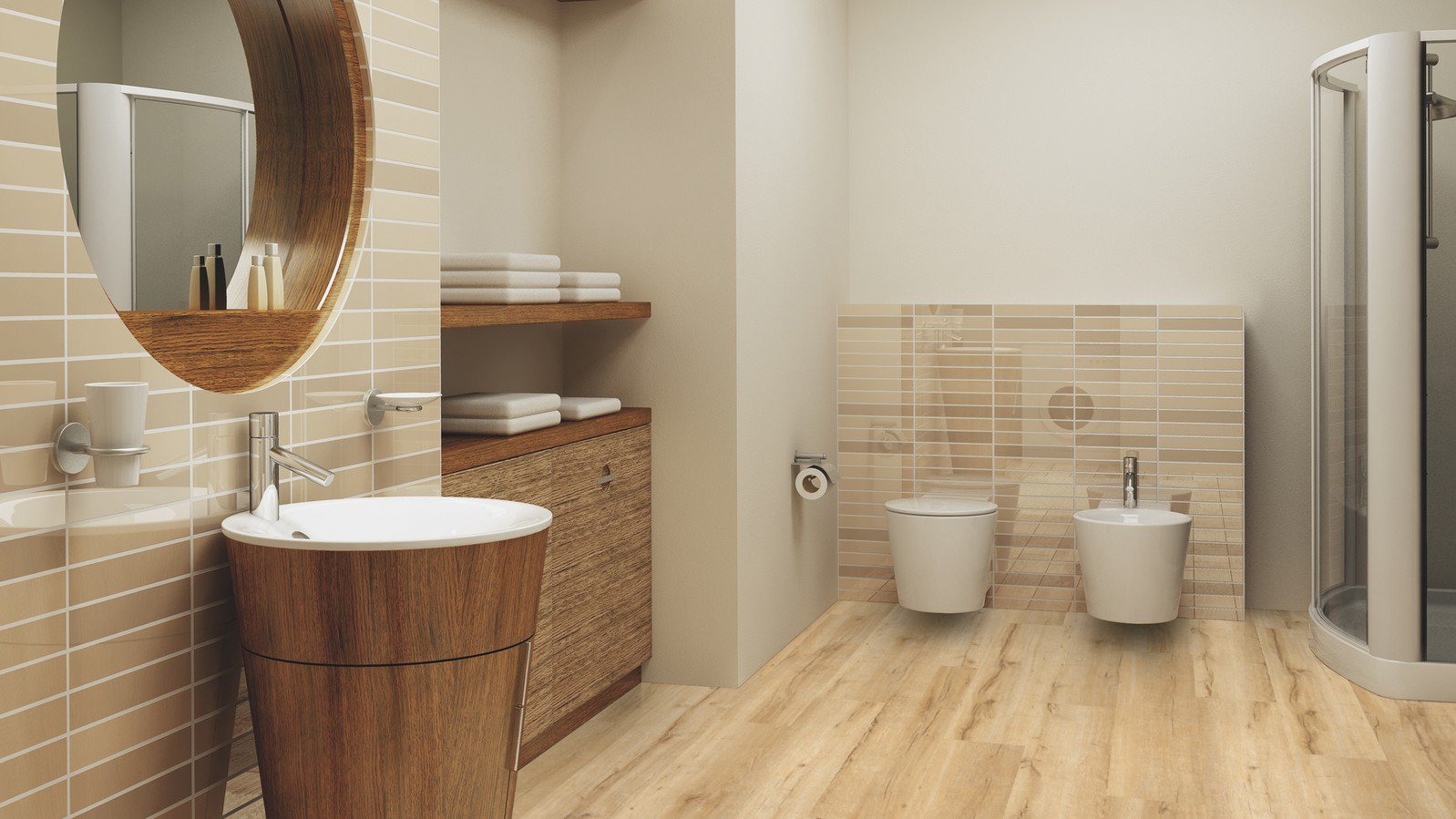 En un baño separado, el suelo laminado habitual durará al menos 10 años. Antes del inodoro, el piso se desgasta con bastante intensidad, es mejor colocar el laminado al menos 31 clases. En el baño, se selecciona un revestimiento resistente a la humedad basado en tableros HDF, que resiste el contacto a corto plazo con el líquido. El laminado recubierto de plástico a base de plástico no se hincha durante el contacto prolongado con el agua; se usa en habitaciones con humedad estable. La resistencia adicional al agua al material es proporcionada por las cerraduras de acoplamiento de plástico.