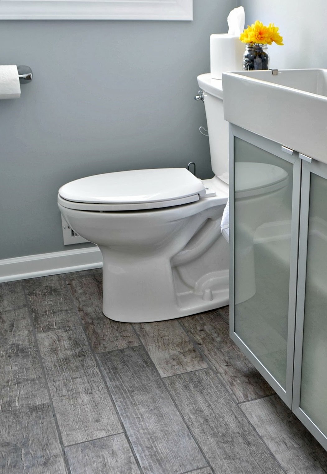 El requisito principal para el piso del baño es una superficie antideslizante. Está bien limpio, las baldosas rugosas son seguras para el movimiento. Los materiales más populares para terminar el baño son los azulejos y baldosas de porcelana. En un área pequeña, puede colocar los azulejos con sus propias manos. La opción económica es linóleo, baldosas de PVC. Ambos revestimientos se ajustan rápidamente, no absorben la humedad, pero se desgastan más rápido durante el uso.En un inodoro separado, baja humedad, sin cambios de temperatura, las fugas no ocurren con más frecuencia que en otras habitaciones. Para pisos, cualquier material restante después de la reparación del apartamento es adecuado.
