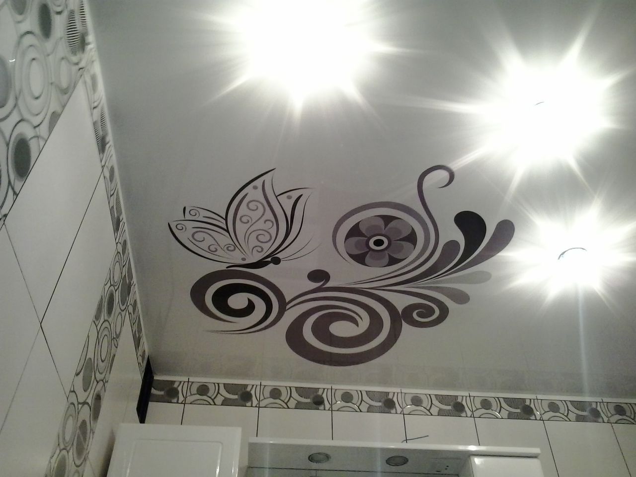 A pesar del alto costo, la tela de PVC se considera la opción más confiable y práctica para decorar la superficie del techo en habitaciones con alto riesgo de inundación. Soporta un gran volumen de agua, evita la inundación del inodoro y las habitaciones adyacentes. El lienzo crea una superficie lisa, no atrae el polvo, no se forma condensación sobre él. Una base irregular está oculta debajo del sistema tensor. En un inodoro con una altura de techo estándar, los lienzos mate y satinado se ven hermosos.