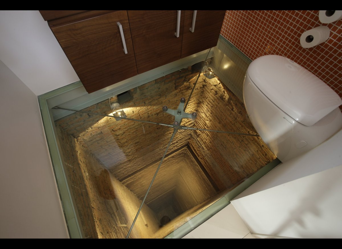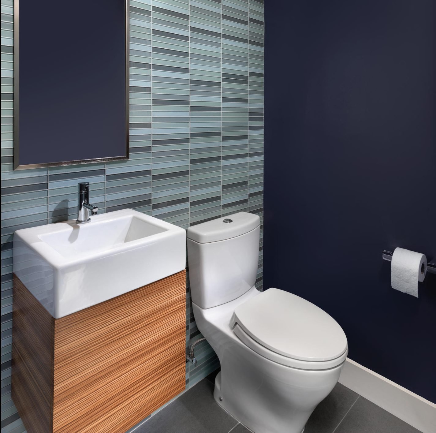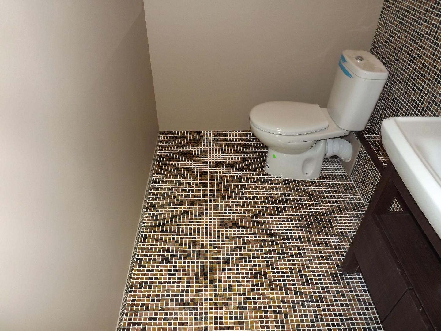En el inodoro para expansión visual, el laminado se coloca a través de la habitación.