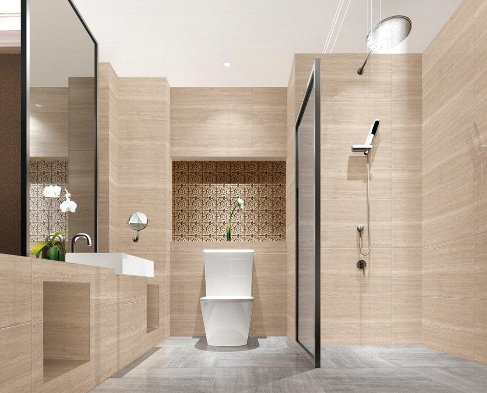 El material no teme al agua, es fácil de limpiar, resistente al moho y los hongos, adecuado para baños separados y combinados. Las baldosas soportan cargas pesadas, daños mecánicos. Si el área lo permite, se puede colocar una lavadora en el baño. Las baldosas cerámicas no atraen el polvo; el inodoro permanece en orden durante mucho tiempo. Para el revestimiento del piso en una habitación pequeña, se recomienda elegir cuadrados pequeños de 200x200 cm de tamaño, realizar un diseño diagonal. El espacio de un cuarto de baño estrecho agregará un revestimiento de azulejos liso que imita piedra, madera.
