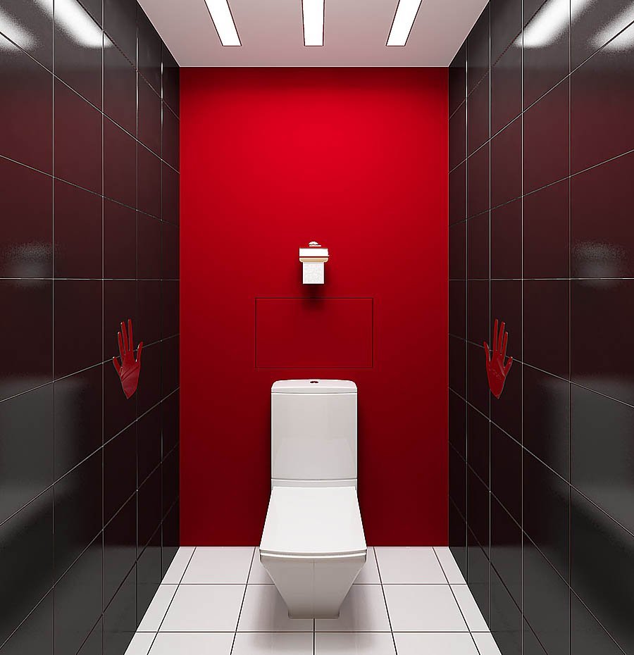 El color negro aporta dinámica, puede crear un juego de contraste en el inodoro negro y las paredes en colores pastel. En inodoros espaciosos, una combinación negra y roja es apropiada.