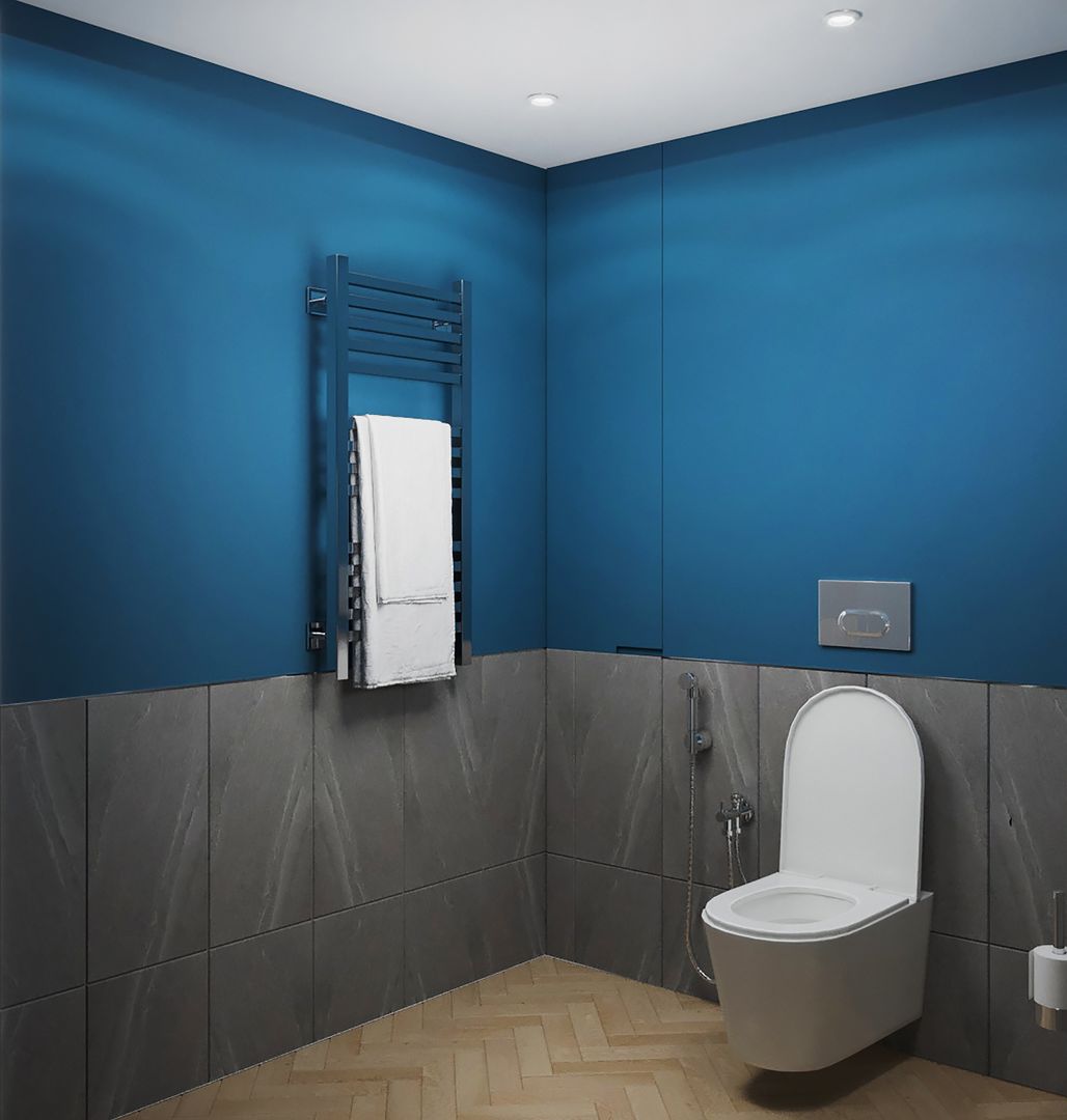 Para terminar el baño, es aconsejable elegir colores neutros claros, pero no se centre en un color blanco. Dos o tres tonos sin contrastes agudos con un borde brillante o una pared decorativa darán volumen y expresividad al espacio. El color básico claro en una habitación pequeña debe ser del 60%. Se recomiendan acentos brillantes en el fondo.