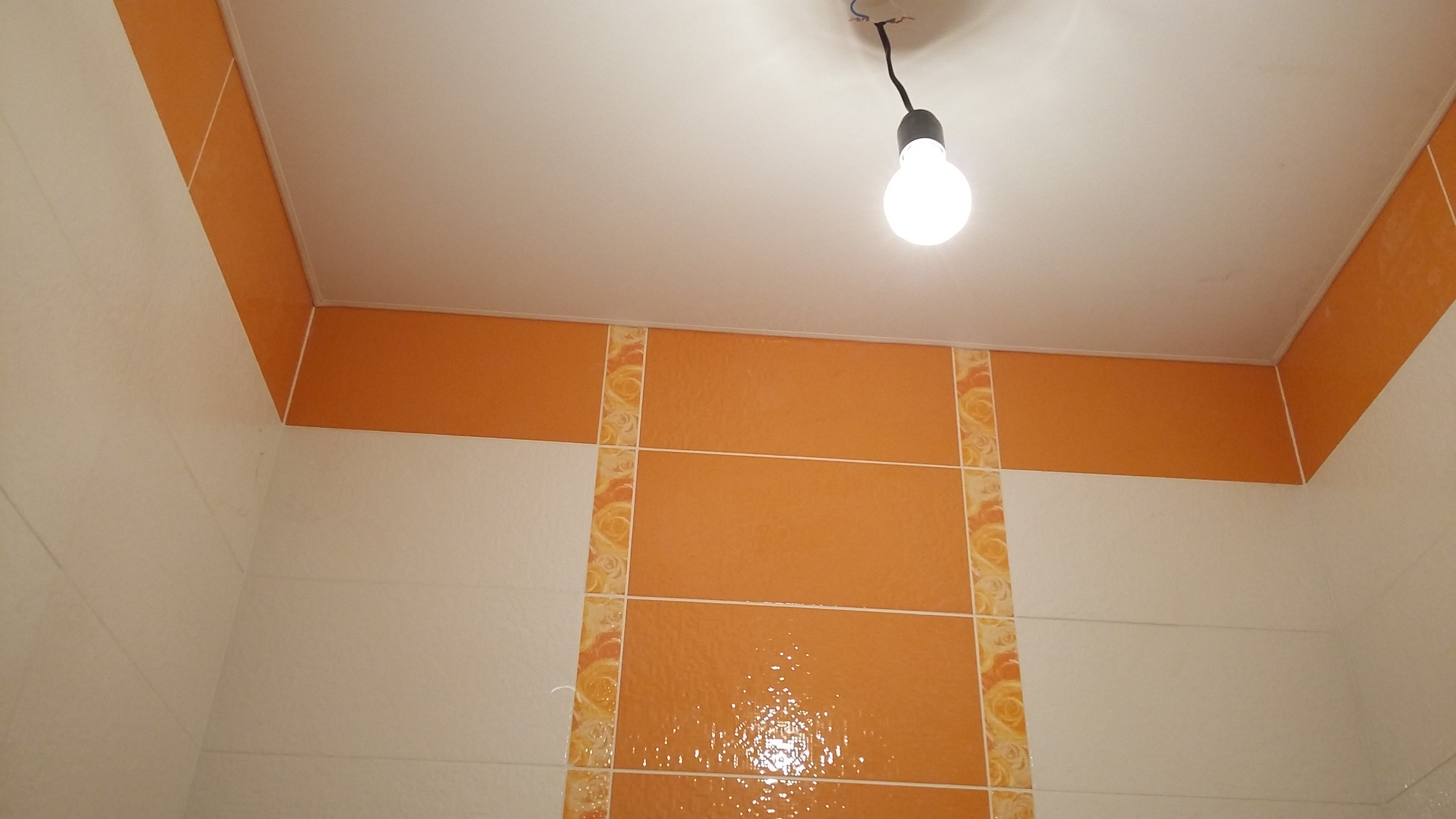 El revestimiento se pega directamente al techo, si la superficie es curva o tiene defectos, se monta en el perfil. Los paneles de PVC no pierden estabilidad de forma, no colapsan en condiciones húmedas. Las colonias de mohos no se pueblan en plástico.
