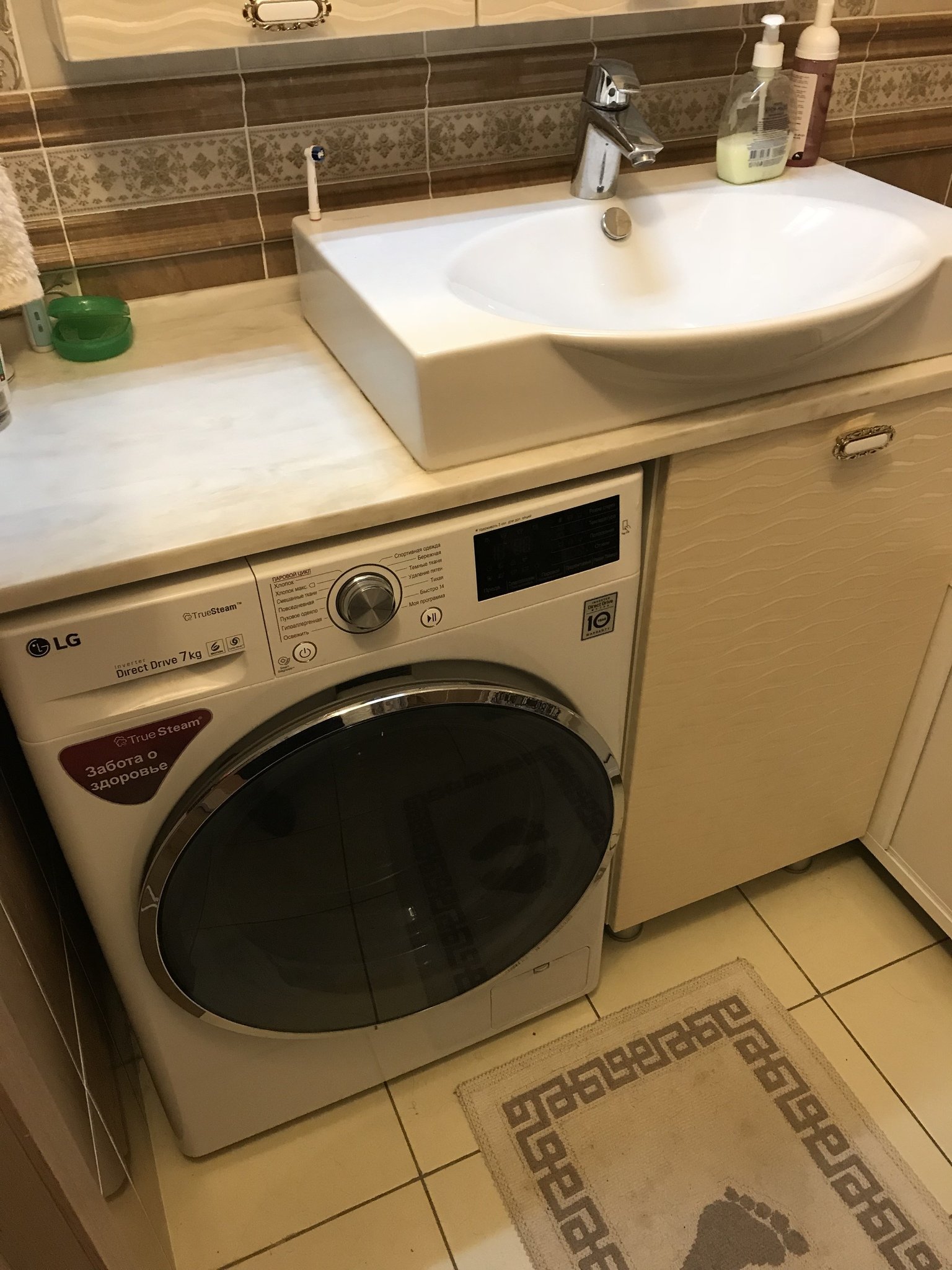 La altura de la máquina debe ser de 0,7 M. La combinación se selecciona en función de la facilidad de uso del fregadero. Si la máquina es más alta, entonces no hará daño instalar el lavabo, pero lavar las manos de una persona y lavar con un crecimiento promedio no será muy cómodo. No se observa la deficiencia de lavadoras con una altura de 0.7 m, así como de nenúfares. Muchas compañías conocidas producen tales productos, pero aún tienen que sacrificar algo: no tiene una gran capacidad. No puede cargar más de 3,5 kg de ropa en el tambor. Si se acumulan muchas cosas, entonces el proceso de lavado tendrá que repetirse muchas veces, lo que no es muy conveniente para familias numerosas.