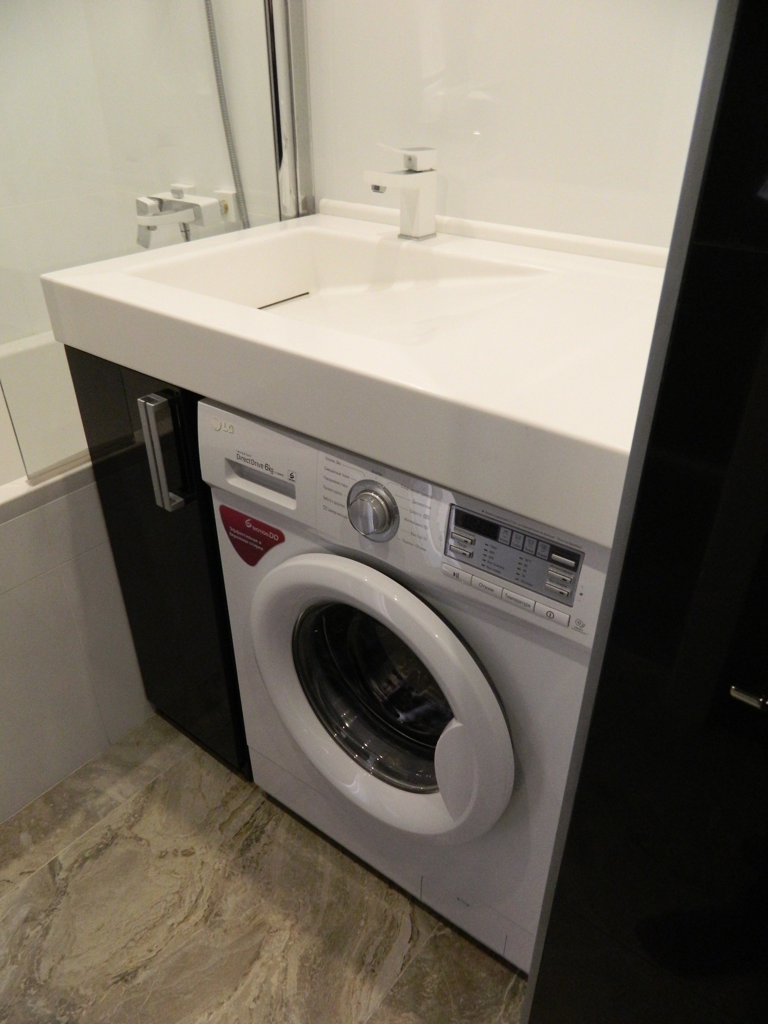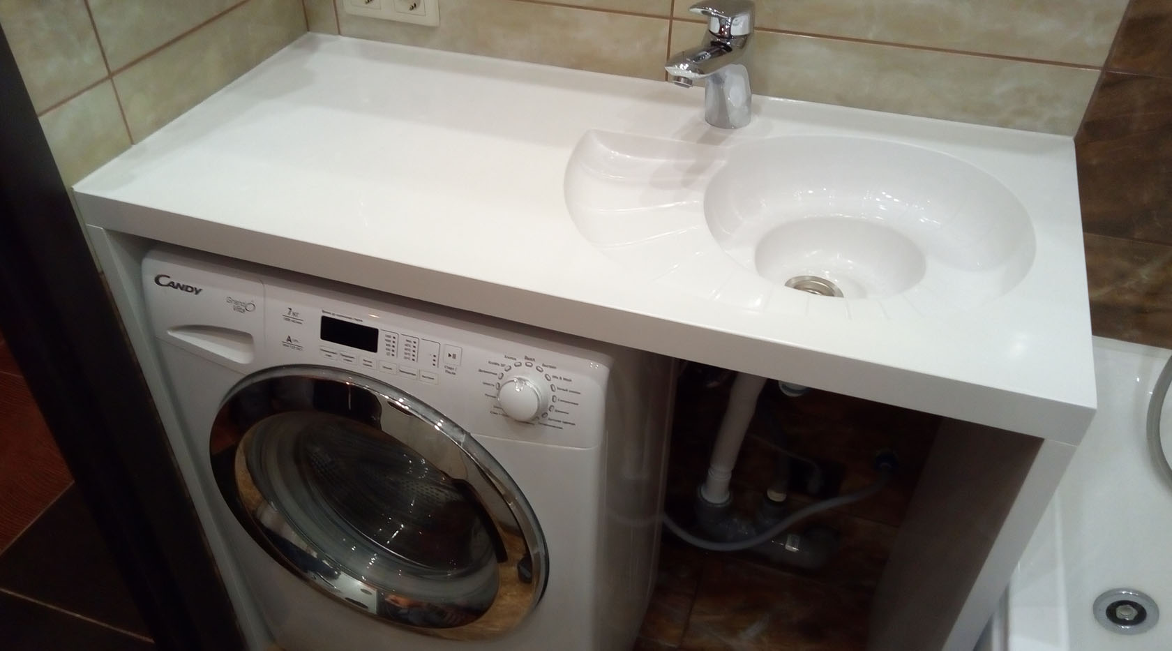 Dado que la solución no estándar está ganando impulso en popularidad, la mayoría de las tiendas venden fregaderos especiales diseñados específicamente para la simbiosis con una lavadora. La gama de modelos no es pobre, por lo que hay mucho para elegir. La lista de defectos es casi igual a la lista de ventajas de la solución interior, por lo que se puede clasificar de forma segura como "50/50":