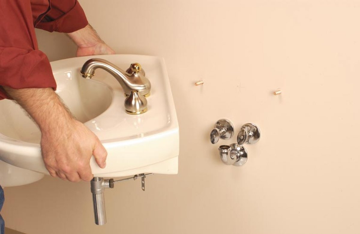 Primero, el fregadero se instala en los soportes, sosteniéndolo con la mano, marca el orificio para el montaje en la pared.Luego taladre agujeros. Se insertan inserciones en ellos y se atornillan los sujetadores. La parte posterior del fregadero está lubricada con sellador y montada en los soportes. La composición evitará que entre humedad entre el lavabo y la pared, seguido de moho. Complete la instalación fijando completamente el tazón a la pared atornillando un gancho especial (también unido al kit) y apretando completamente los pernos del soporte.
