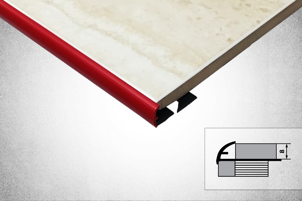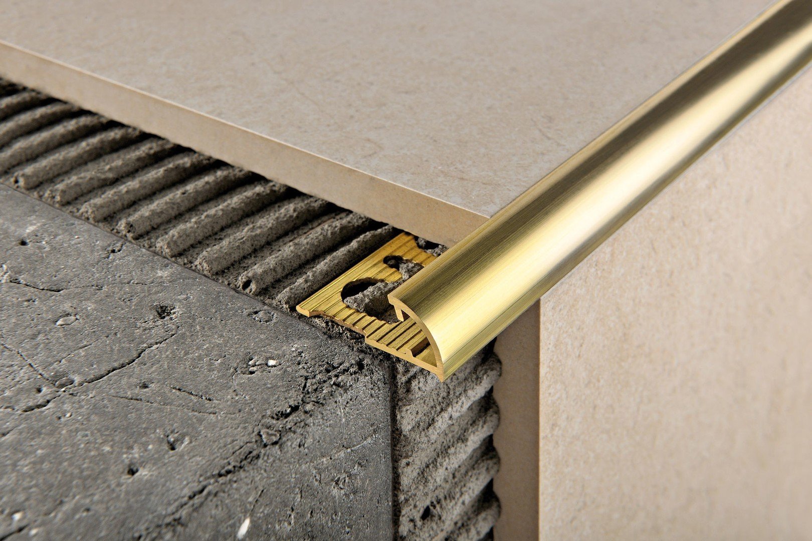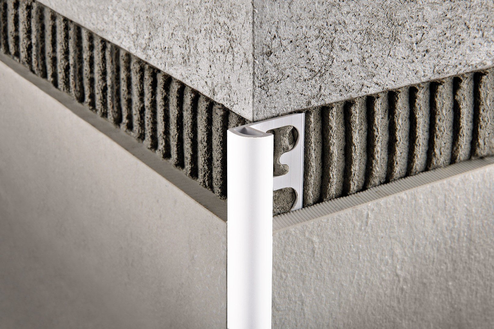 Las juntas externas en el interior están acabadas con una gran cantidad de sujetadores. La barra exterior será una solución conveniente, incluso si el mosaico en la esquina "se acuesta" con una superposición. La moldura externa tiene un diseño relativamente simple.El ancho es de 7-11 mm, y la longitud del elemento es de hasta 2.5 m. La instalación de la esquina exterior en la gran mayoría de los casos se lleva a cabo de una sola manera estándar.