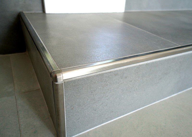 Las construcciones de esquinas son una gran alternativa a las juntas deslizantes. La instalación será mucho más barata y la apariencia será interesante a su manera. El primer paso se determina con el material de fabricación. Las construcciones de PVC se mejoran constantemente, las de metal están diseñadas para diversas cargas y las de cerámica se ven orgánicamente con azulejos. Los paneles se seleccionan teniendo en cuenta el grosor de las baldosas. Además, la forma del perfil de la estructura de la esquina debe corresponder al método y al lugar de uso.