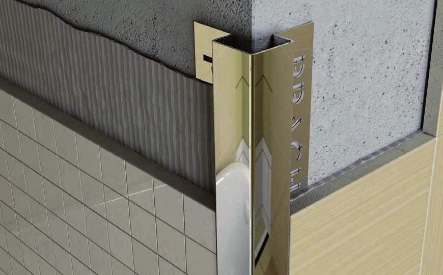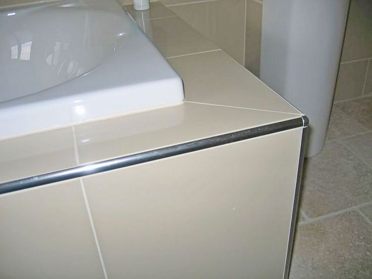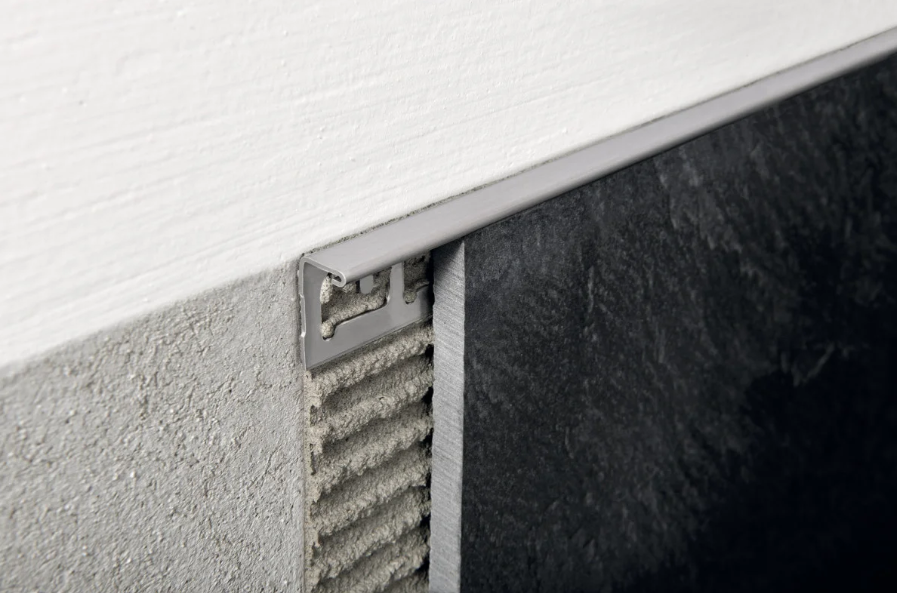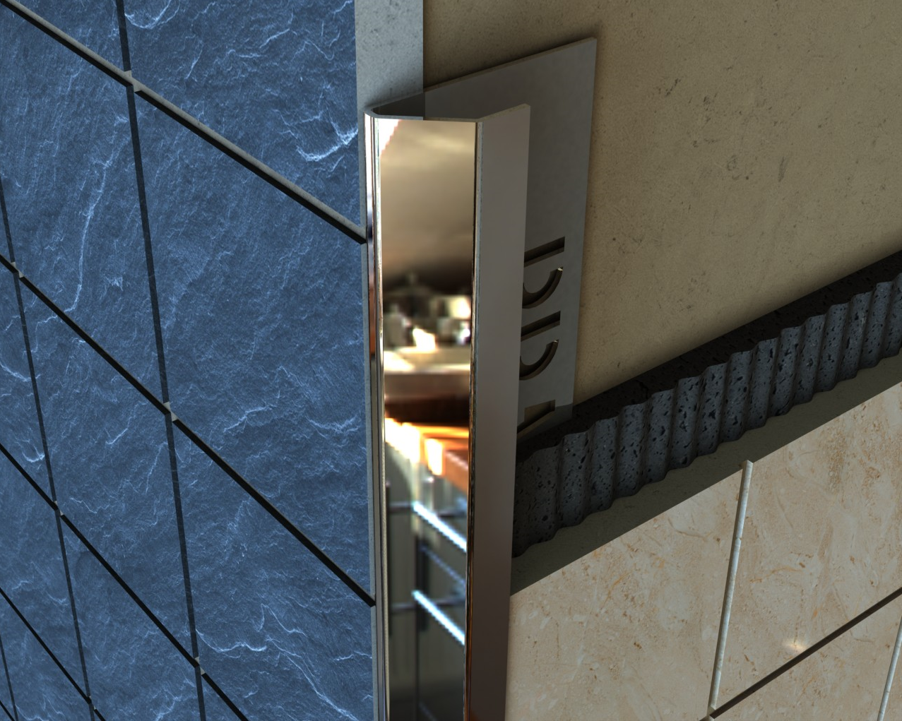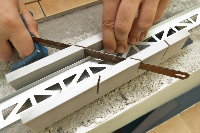 El relieve de los adornos para el acabado de las esquinas internas incluye una ranura para baldosas, una nervadura con perforación y una parte frontal cóncava. La instalación de los recortes se inicia después de terminar una de las superficies verticales. El revestimiento terminado es necesario para que la esquina se pueda hacer detrás de la baldosa. Los asistentes a veces simplifican la tarea: retire la parte posterior y "coloque" la parte delantera en silicona. La instalación se realiza después de completar el trabajo de revestimiento y el producto no interferirá con la evaluación de la conformidad de las costuras.