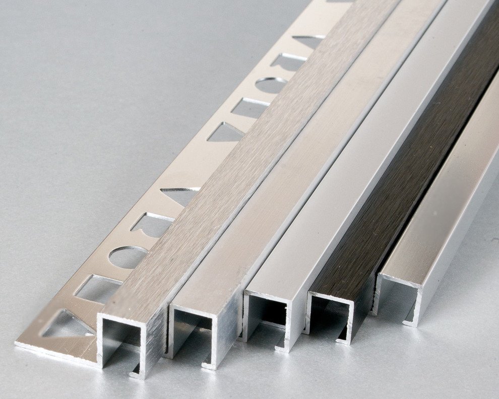 Hay 4 tipos de perfiles: en forma de П-, Т-, Г- y Н.En forma de L también se llama angular, y se usan en la unión de recubrimientos verticales y horizontales. Las formas en H y T actúan como un inserto divisor para conectar el revestimiento del piso al mismo nivel.