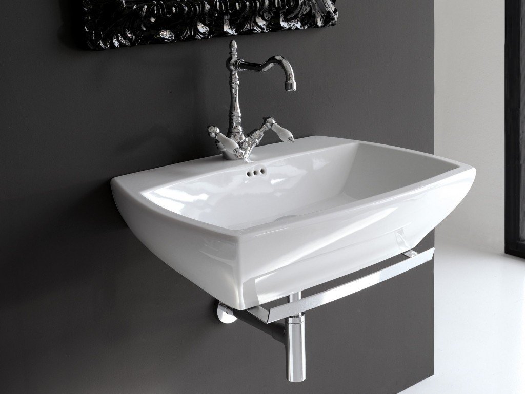 Se consideran los modelos más populares. Se montan cerca de la pared mediante soportes o montantes. Los lavabos colgantes están hechos de una variedad de materiales, pero es mejor elegir productos más livianos, por ejemplo, cerámica, acero inoxidable.Los lavabos pesados de piedra natural serán difíciles de arreglar de forma segura.