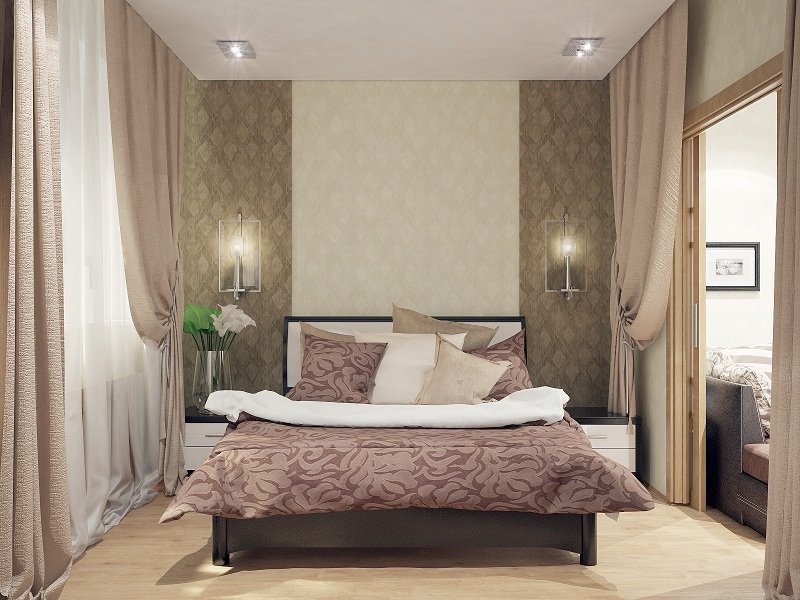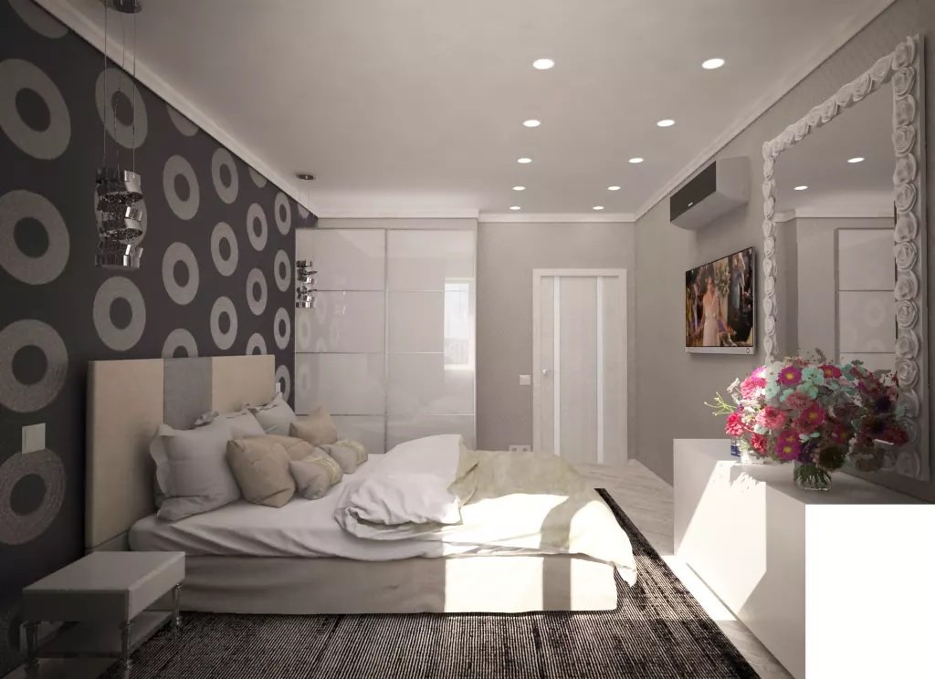 El diseño del salón es apropiado para tonos naturales brillantes. Colores violeta, rosa y verde claro adecuados. Es necesario cuidar la presentabilidad del interior de la habitación. No se puede sobrecargar con objetos voluminosos innecesarios. Se debe prestar especial atención a la elección de los textiles. La seda se verá mejor que cualquier otro material. No amuebles la habitación con muchos muebles. Debe ser compacto, pero espacioso. Los artículos pequeños se seleccionan en colores brillantes. Se alienta a los diseñadores a crear contraste debido a una de las paredes. Preferiblemente, está enfrente de la cama. Se puede colocar un póster ecológico en el techo. Como el dormitorio es una sala de relajación, es necesario crear un ambiente propicio para esto. No tiene sentido hacer una iluminación brillante o equipar muchas fuentes de luz.