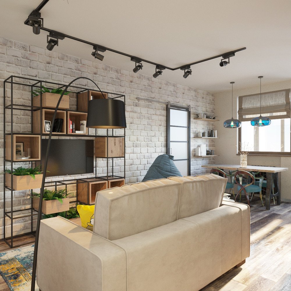 El apartamento estudio es una buena solución para parejas jóvenes. En un espacio, puede combinar la sala de estar con una cocina o dormitorio, o las tres habitaciones juntas. Se recomienda que deje una habitación separada para que los niños puedan vivir allí más tarde. La prioridad para una pareja en un apartamento de dos habitaciones es el espacio. No es necesario amueblar las habitaciones con exceso de muebles. No hay necesidad de salir del pasillo o agrandar la cocina. El apartamento debe tener un rincón con un ambiente íntimo: iluminación ligera, colores relajantes, decoración adecuada. No descuides el área de trabajo. Los jóvenes deben equipar un lugar cómodo donde nada distraiga el trabajo en la computadora. Vale la pena cuidar una cantidad suficiente de sillones y sofás para recibir amigos o familiares. Se recomienda dejar la posibilidad de reorganizaciones y cambios adicionales en el diseño.