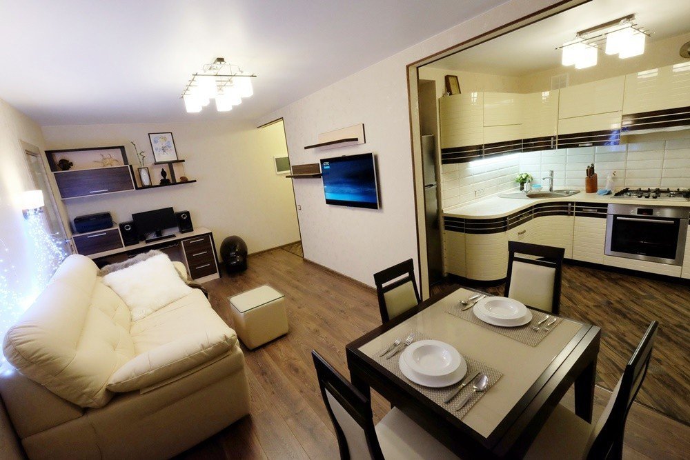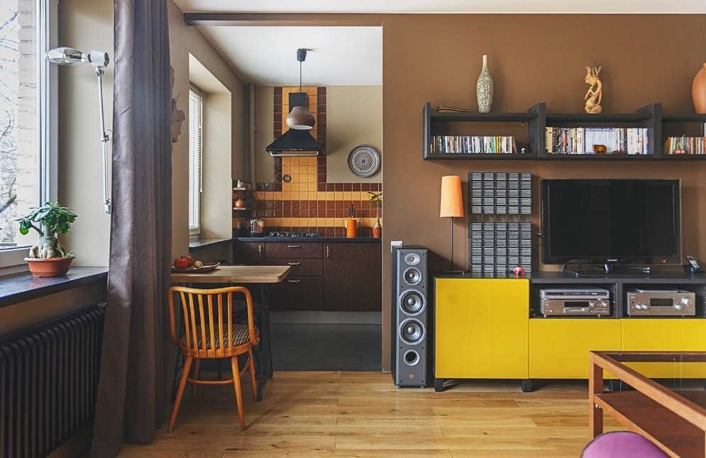 Apartamento de diseño de un dormitorio de 44 m2. m: ejemplos de reurbanización