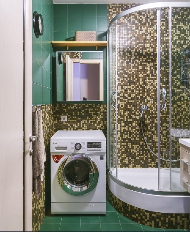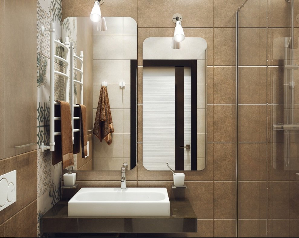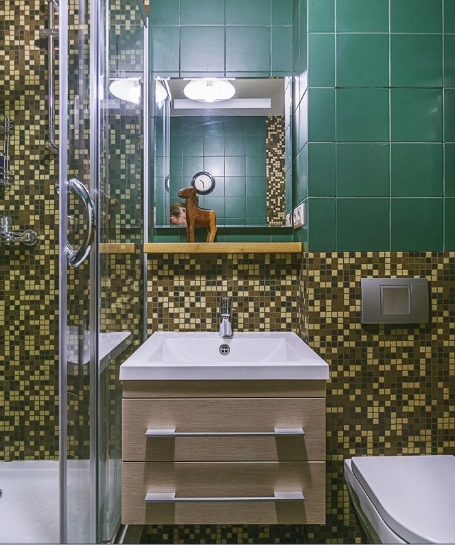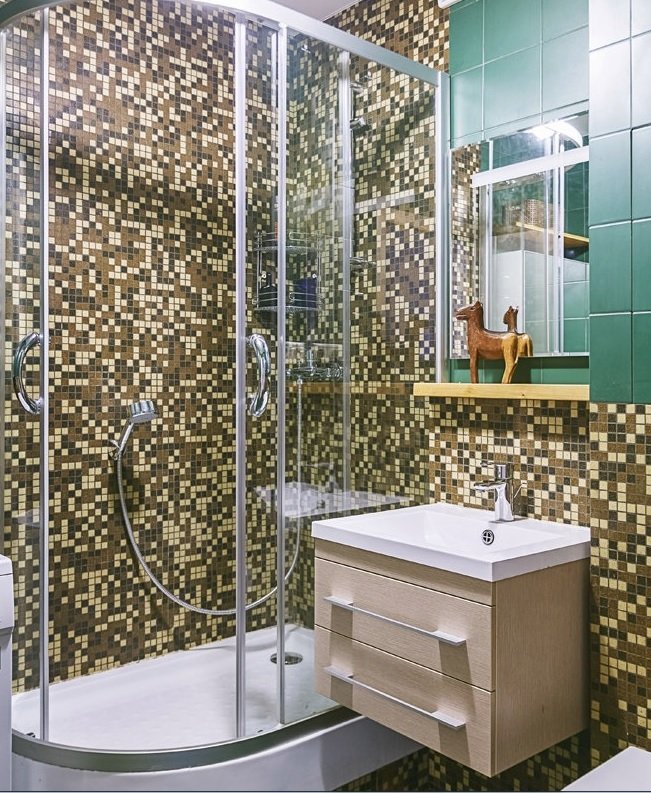 Si retira el pasillo para aumentar el baño, podrá colocar una lavadora o una bañera más grande. Reducir el baño ampliará otras habitaciones. En este caso, se proporciona el reemplazo del baño con una ducha. Para la decoración, es adecuado un azulejo grande de colores mezclados saturados. Amplíe visualmente la habitación usando líneas verticales en las paredes. Un espejo sin marco salvará y expandirá visualmente el espacio. Para la decoración de las baldosas "leyenda". En el baño combinado, no es habitual colocar dispositivos adicionales sin importancia práctica. Entre el baño y el baño puedes hacer una partición. Se recomienda llenar la habitación con elementos que no se vean afectados por la humedad para que no aparezcan hongos. Si hay mucha madera en el baño, entonces se debe aplicar una capa resistente a la humedad.