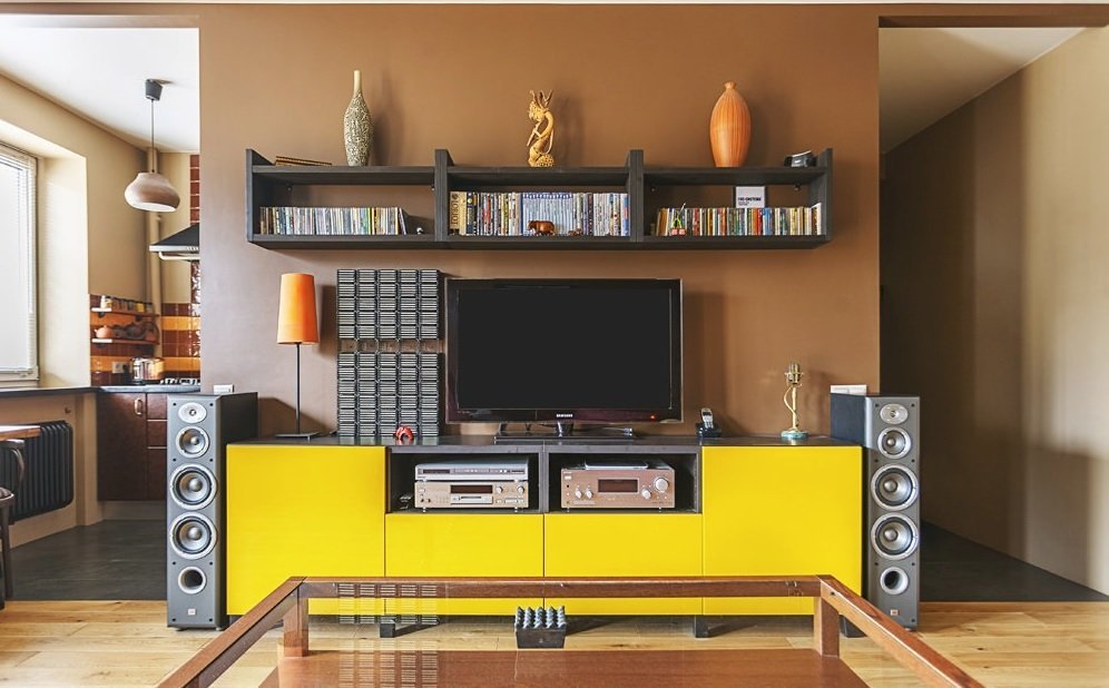 La coloración debe crear un estado de ánimo positivo, mejorar la geometría y la percepción del espacio. En apartamentos pequeños, se prefieren los tonos claros. Los muebles de madera encajarán en cualquier interior moderno. Está hecho no solo en color natural, lo que permite que se use para combinaciones de colores. Es mejor diseñar locales residenciales en colores cálidos y técnicos en los fríos. Para los niños, se organiza un rincón colorido con dibujos. Para habitaciones grandes, el contraste y el juego de colores son importantes, su cambio alternativo. No hay restricciones especiales, los tonos ácidos de todos los colores y el rojo son apropiados en el interior de la sala de estar.Sin embargo, pueden afectar negativamente el estado de ánimo y el bienestar. Las opciones de colores diferentes o idénticos de todas las habitaciones parecen interesantes. El criterio principal para elegir un color es el cumplimiento del estilo de diseño.