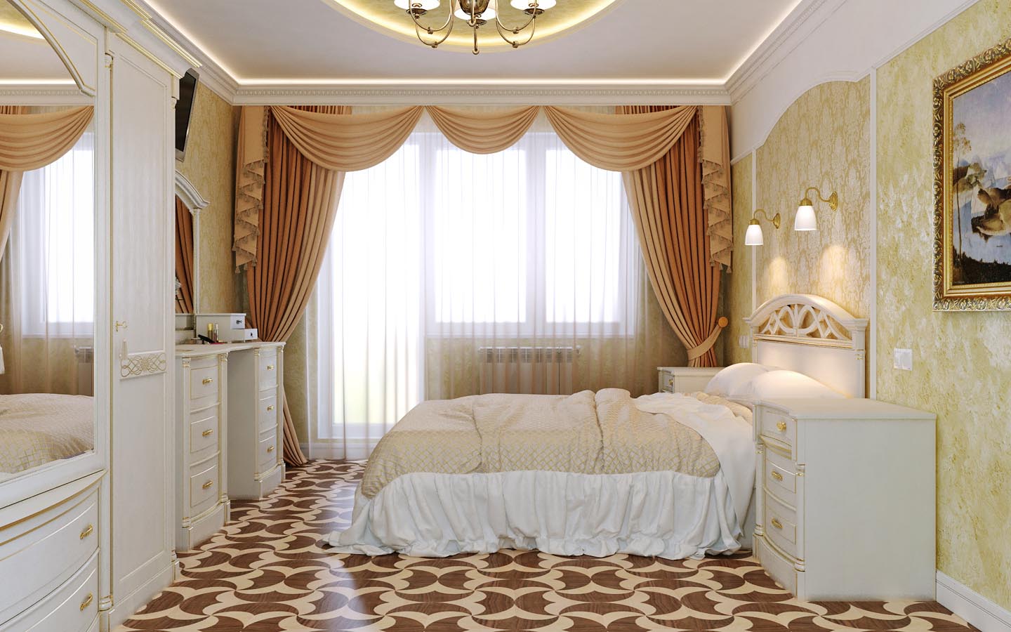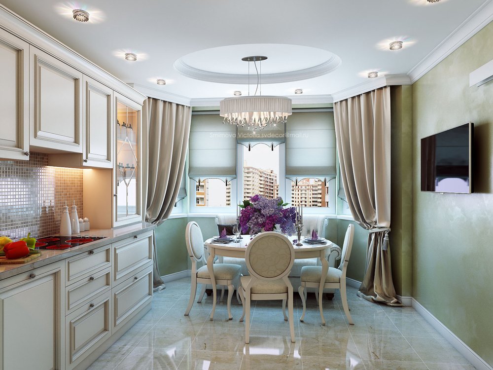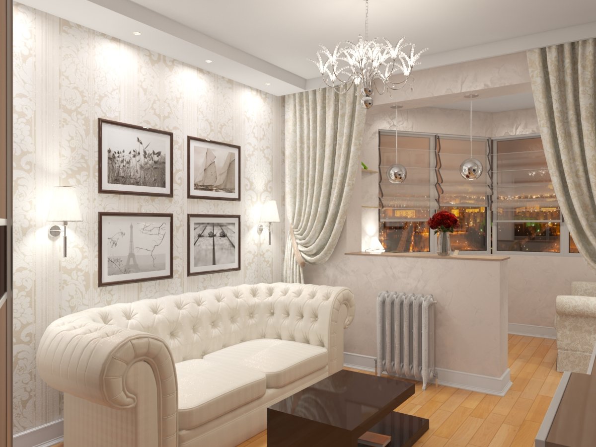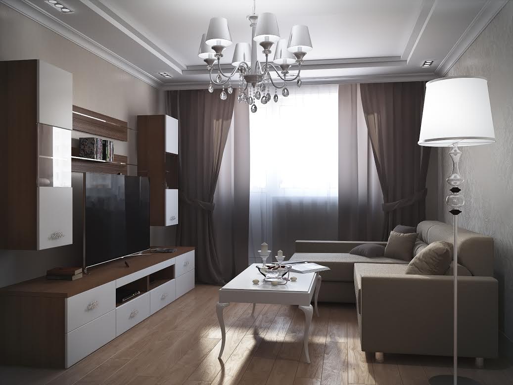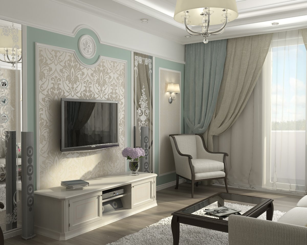 Clásico Los cánones de estilo requieren una abundancia de muebles caros de alta calidad, lujosos y monumentales.Para un apartamento relativamente pequeño, el neoclasicismo con accesorios característicos, pero sin una pompa excesiva, es más apropiado.