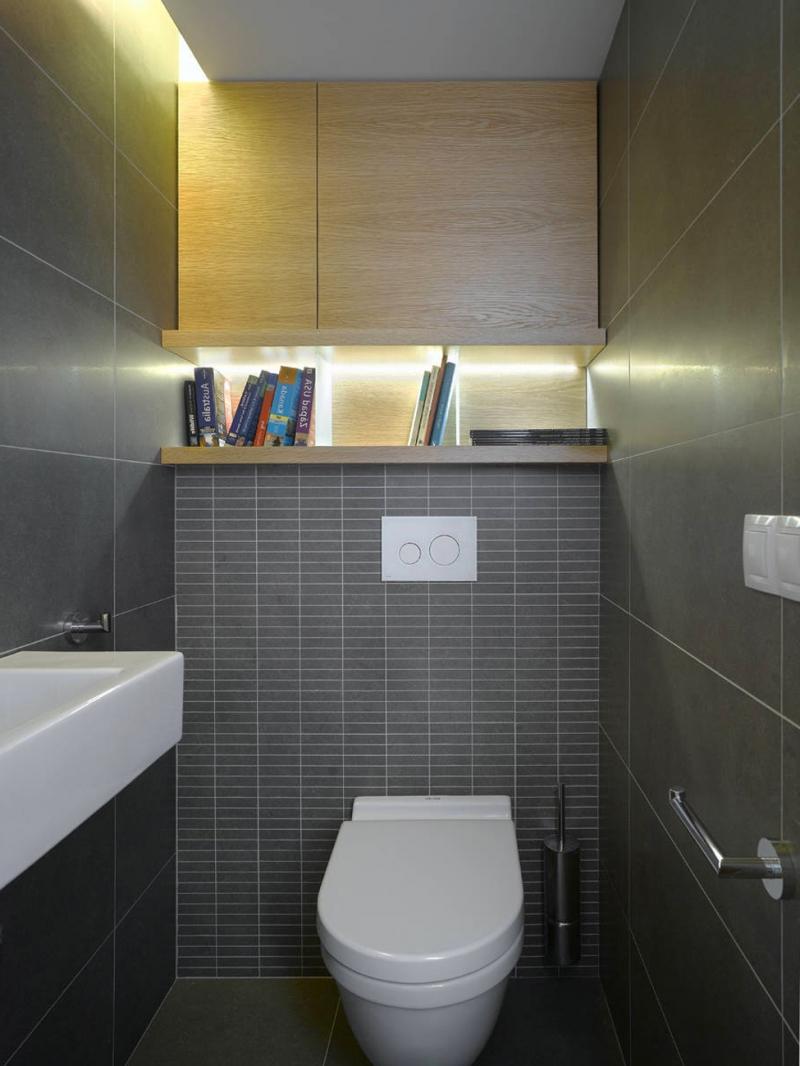 Esta es otra opción cuando no necesita cambiar nada en el diseño inicial. La caldera está oculta dentro de una caja falsa ubicada en el inodoro. Al mismo tiempo, la instalación del inodoro está oculta en la misma caja. La caldera eléctrica se puede reemplazar por un calentador de agua a gas.