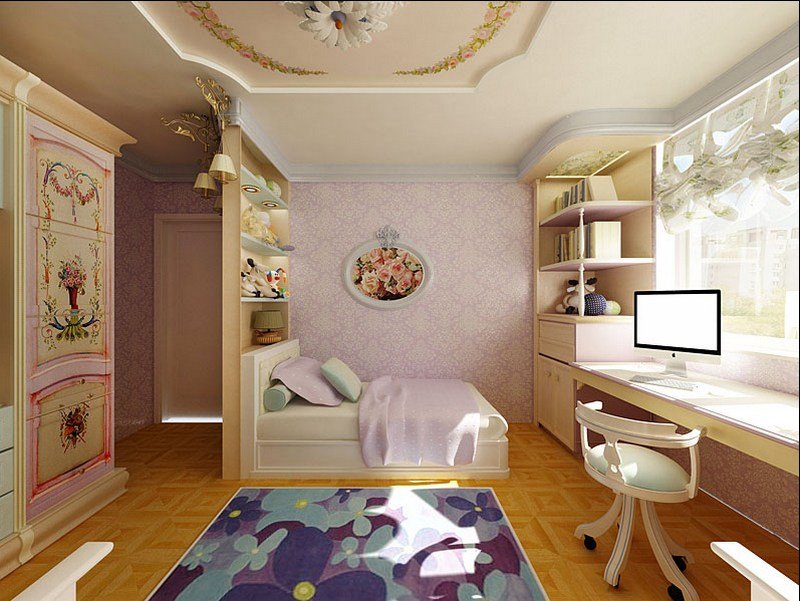 Variante de una casa acogedora para una pareja con 2 hijos. Sucede que no hay forma de comprar una vivienda más espaciosa, por lo que debe proceder de lo que es. En este caso, la guardería es conveniente para colocar en una habitación más grande. Un espacio más pequeño servirá como dormitorio para los padres. La habitación de los niños tiene capacidad para 2 camas, un armario y una sala de estar. El segundo escritorio es aconsejable para sacar una cálida logia.