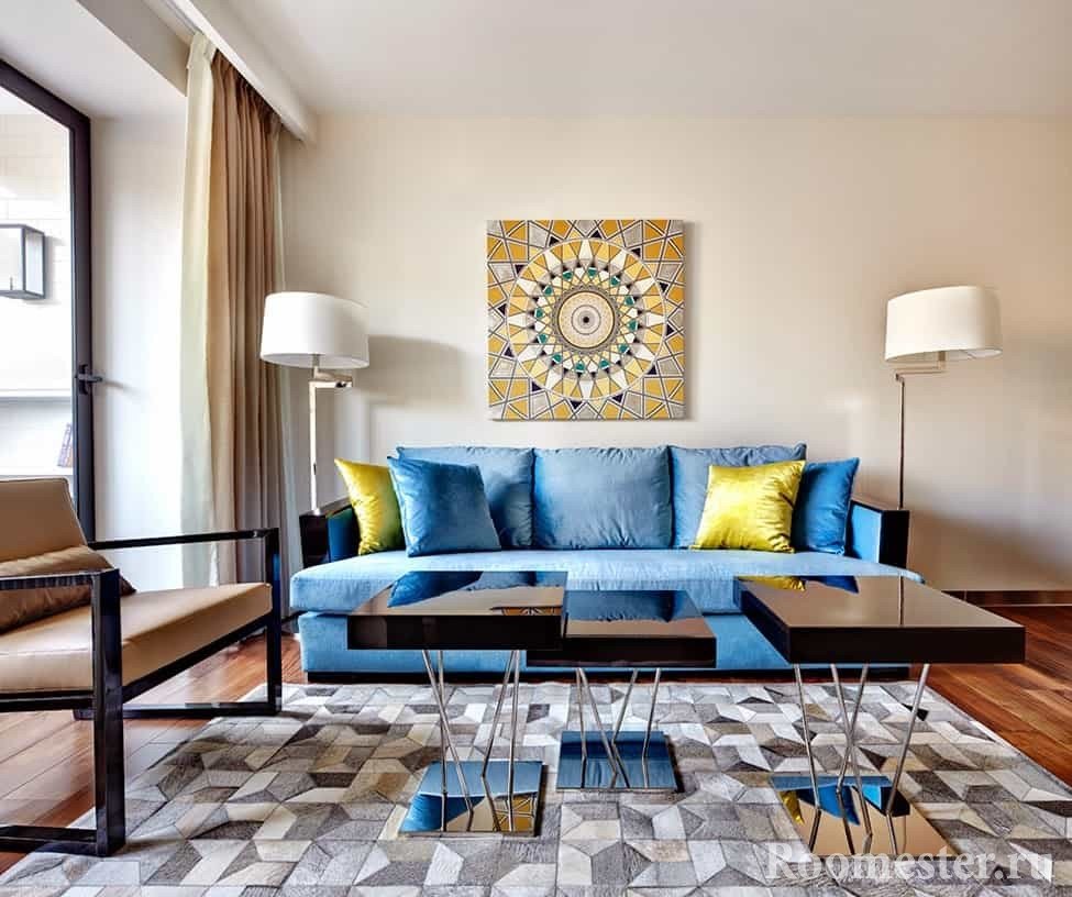 Estilo exquisito, capaz de combinar de manera competente la vida moderna con el estilo clásico. Art Deco difiere de todos los estilos en que está completamente abierto a cualquier tipo de experimentación. Muy a menudo se usan colores brillantes como el morado, la frambuesa, el índigo, la esmeralda y el zafiro. También a veces, como colores complementarios, metálicos, dorados, negros o azules están involucrados. En un estilo como art deco, el elemento principal en el diseño debe ser un "punto brillante", puede ser una pared o un gran accesorio de muebles.