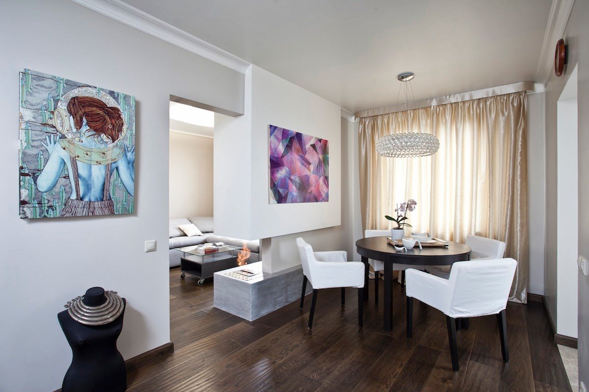Diferentes niveles de techos o pisos. La primera opción es relevante si el apartamento es lo suficientemente alto.