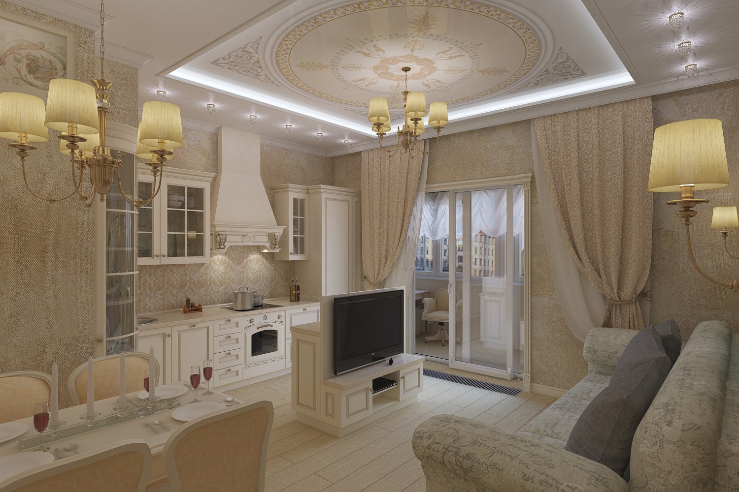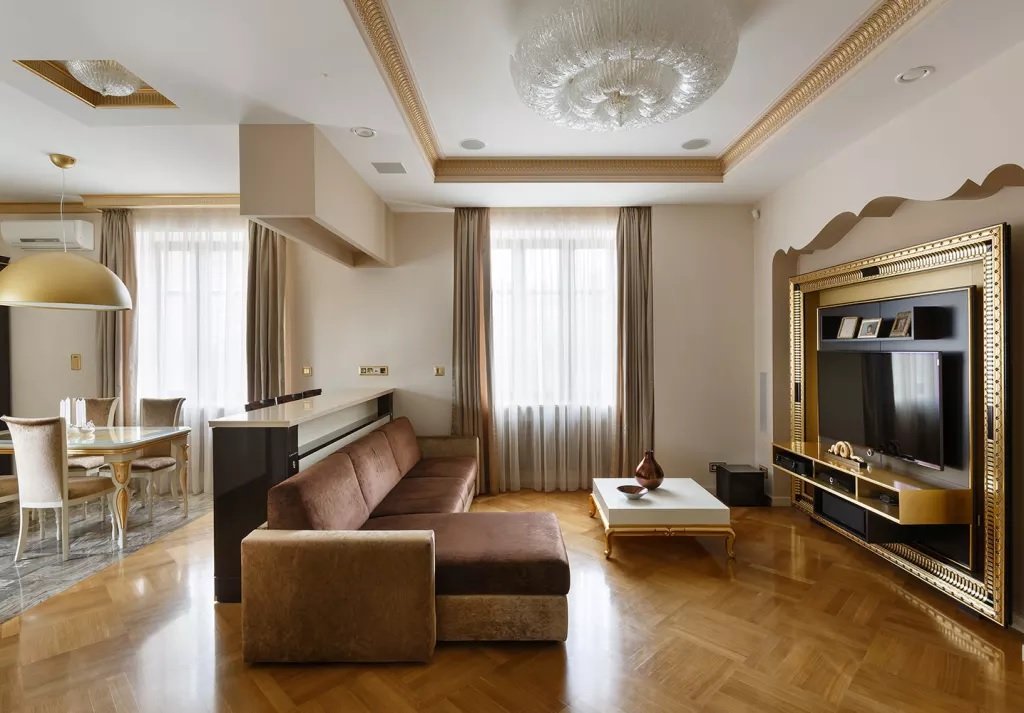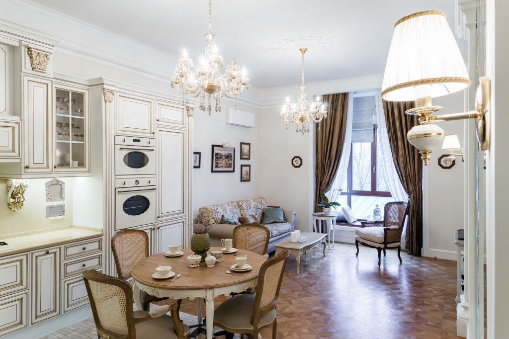 Clásico La designación general de un grupo de estilos que se han utilizado activamente en los últimos siglos. De hecho, es solo un clásico adaptado a una persona moderna con una abundancia de decoración, textiles pesados, madera en decoración y mobiliario, formas elegantes y superficies doradas.