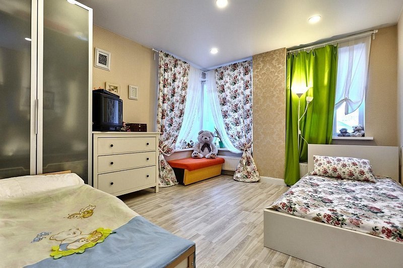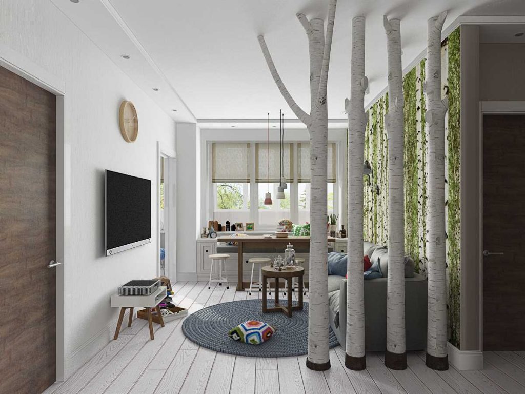 El problema de las instalaciones combinadas para familias jóvenes en las que ha aparecido un niño es urgente. La reposición se asocia no solo con nuevas preocupaciones (pañales, chalecos), sino también con la disposición de la guardería. A menudo, un pedazo de la sala de estar o la habitación de los padres se asigna debajo.