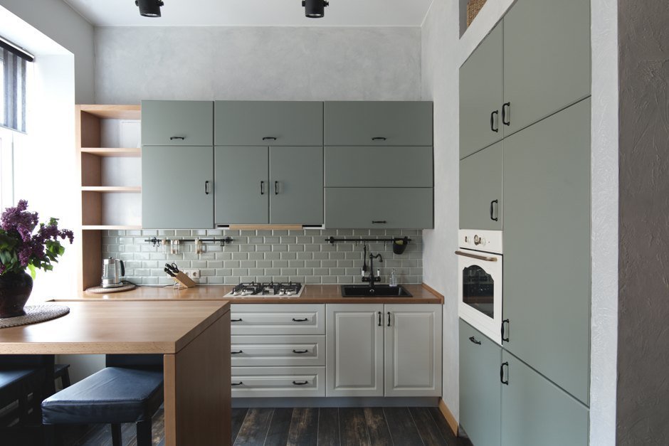 Instalación de una lámpara con una altura de suspensión ajustable sobre la mesa de la cocina para crear una atmósfera acogedora de cenas.