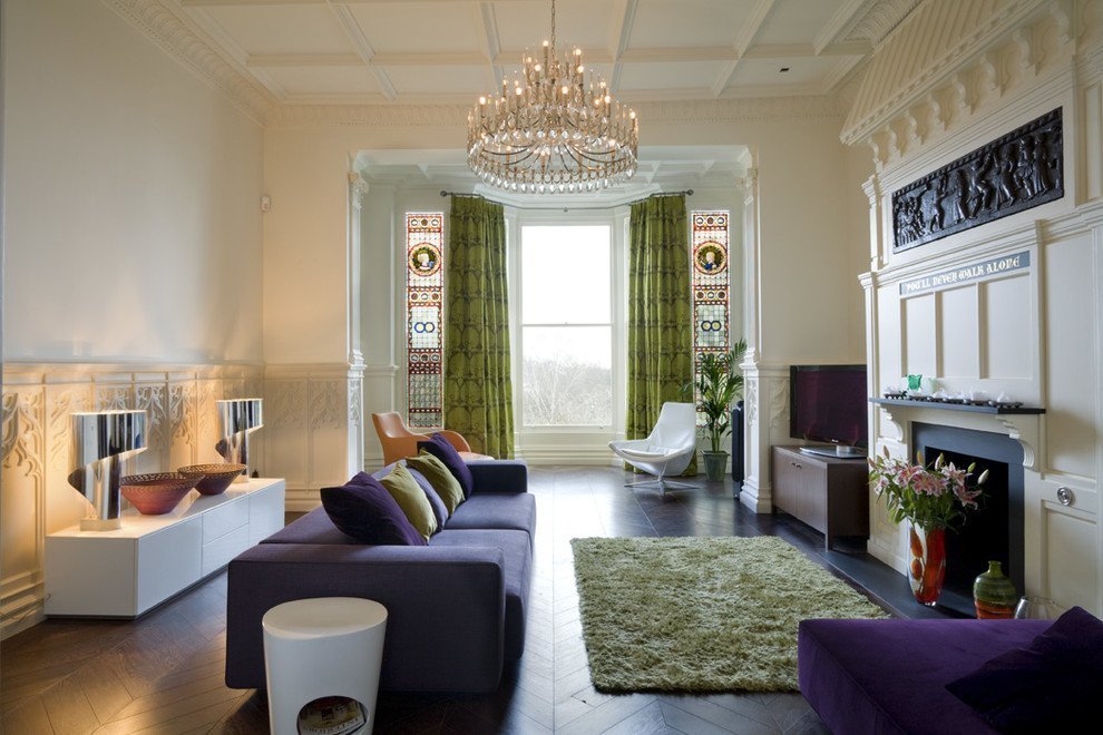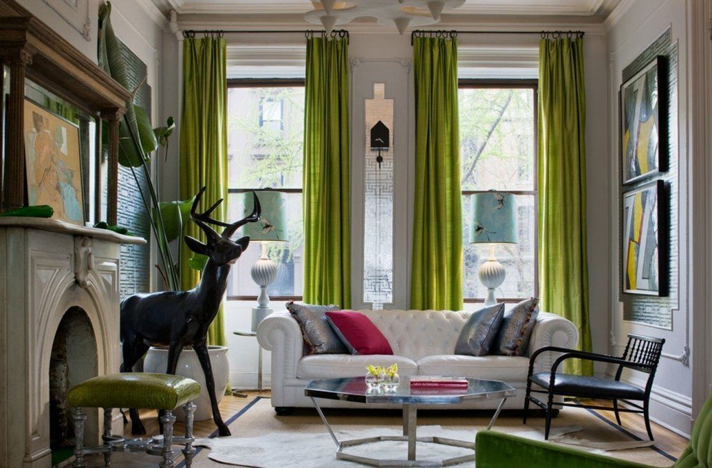 Las cortinas opacas tradicionales, ubicadas a los lados de las ventanas, aumentan visualmente la altura de la habitación aún más. Es posible equilibrar las proporciones de la habitación con la ayuda de trucos de decoración:
