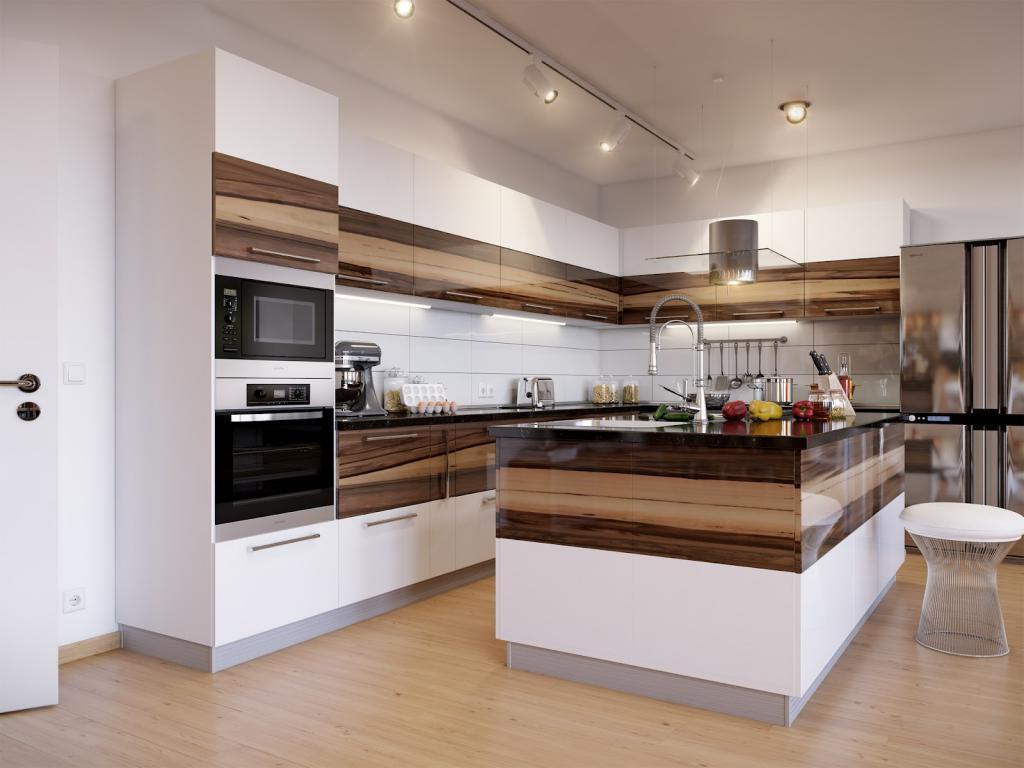 En un apartamento de una habitación, donde la altura es significativamente más alta que la estándar, es lógico ocupar el espacio superior de los locales no residenciales con lugares de almacenamiento. Lo principal en este caso es proporcionar un sistema de elevación conveniente que proporcione acceso a los compartimentos. En el apartamento de dos habitaciones para una habitación separada existente, una solución interesante puede ser crear un "cielo estrellado" en la superficie del techo pintando, usando un proyector especial o instalando los LED más pequeños. La altura de la pequeña cocina en estilo rústico ayudará a ajustar la instalación de un estante de madera rugosa debajo del techo, donde se colocan elementos de decoración voluminosa: jarras de arcilla, platos, tazas de cerámica maciza. Los ganchos están unidos a la parte inferior del estante: sartenes de cobre, utensilios de cocina antiguos, tableros pintados están colgados allí.