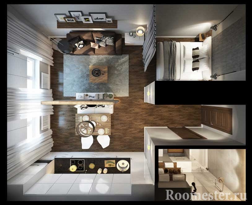 Al diseñar un apartamento tipo estudio, se debe tener en cuenta la posibilidad de demoler las paredes, ya que en algunos casos esto está estrictamente prohibido.