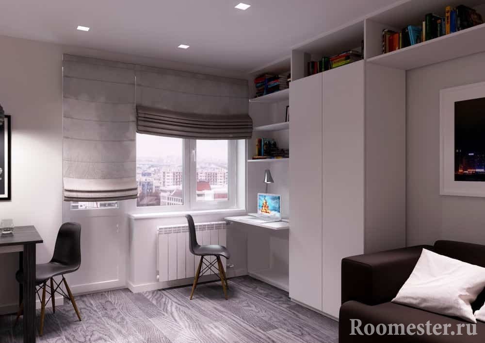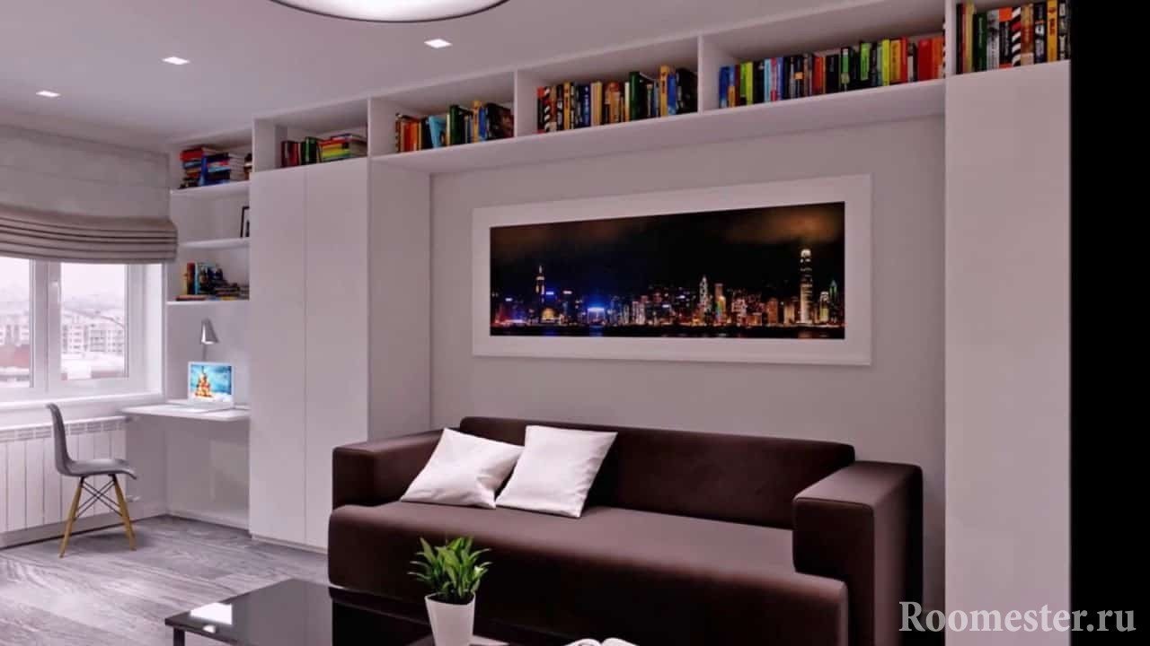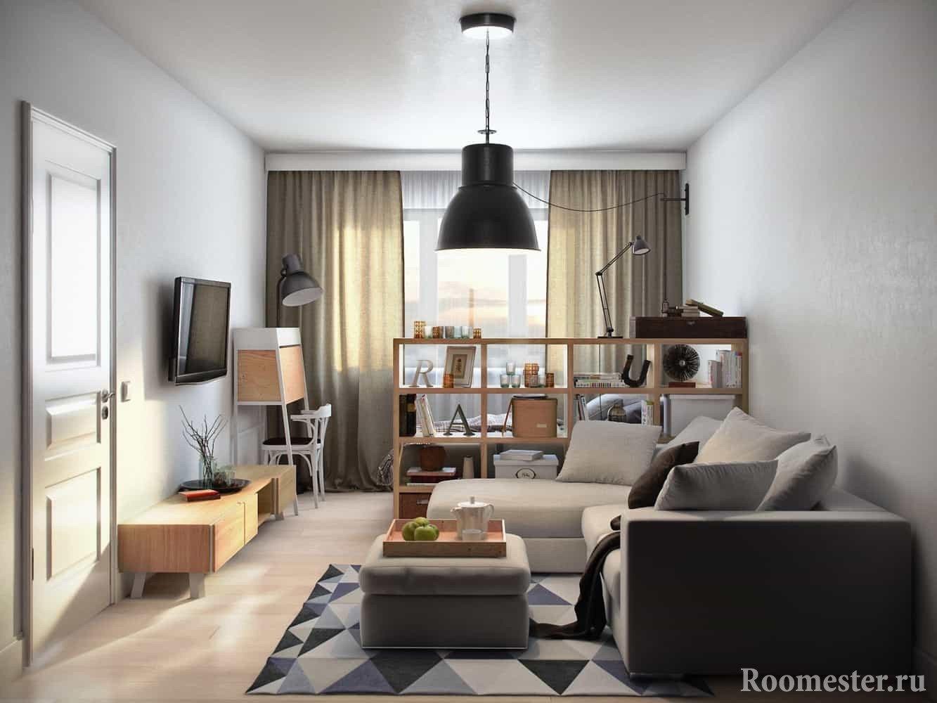 Al crear un proyecto de diseño para un apartamento de 30 m2.debe prestar atención a la posibilidad de colocar zonas individuales en el interior. Por ejemplo, el área para dormir debe ubicarse en la esquina más alejada, y el área de relajación puede estar en el centro de atención, para el niño necesita crear un rincón para privacidad, dormir, un lugar para juegos. El área del gabinete puede ocupar un balcón previamente acristalado y aislado. Es importante no sobrecargar el espacio con zonificación y hacerlo discretamente, siguiendo el conjunto general del diseño de la sala.