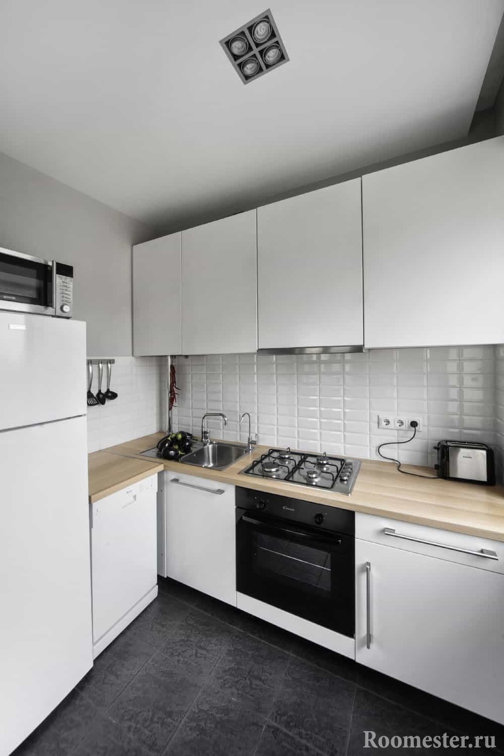 A pesar del espacio común con la habitación, el material de la superficie del piso en la cocina debe ser fácilmente lavable (baldosas, linóleo, laminado).
