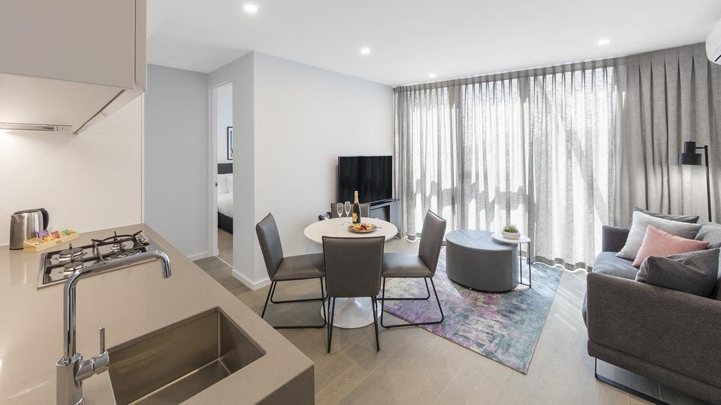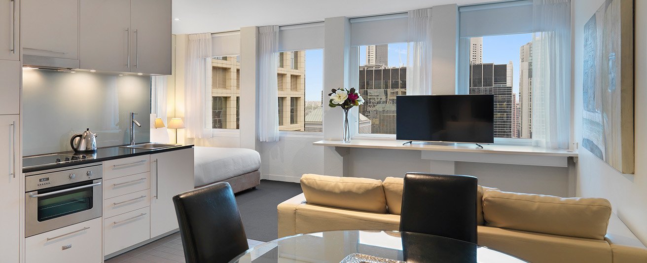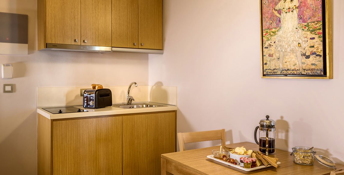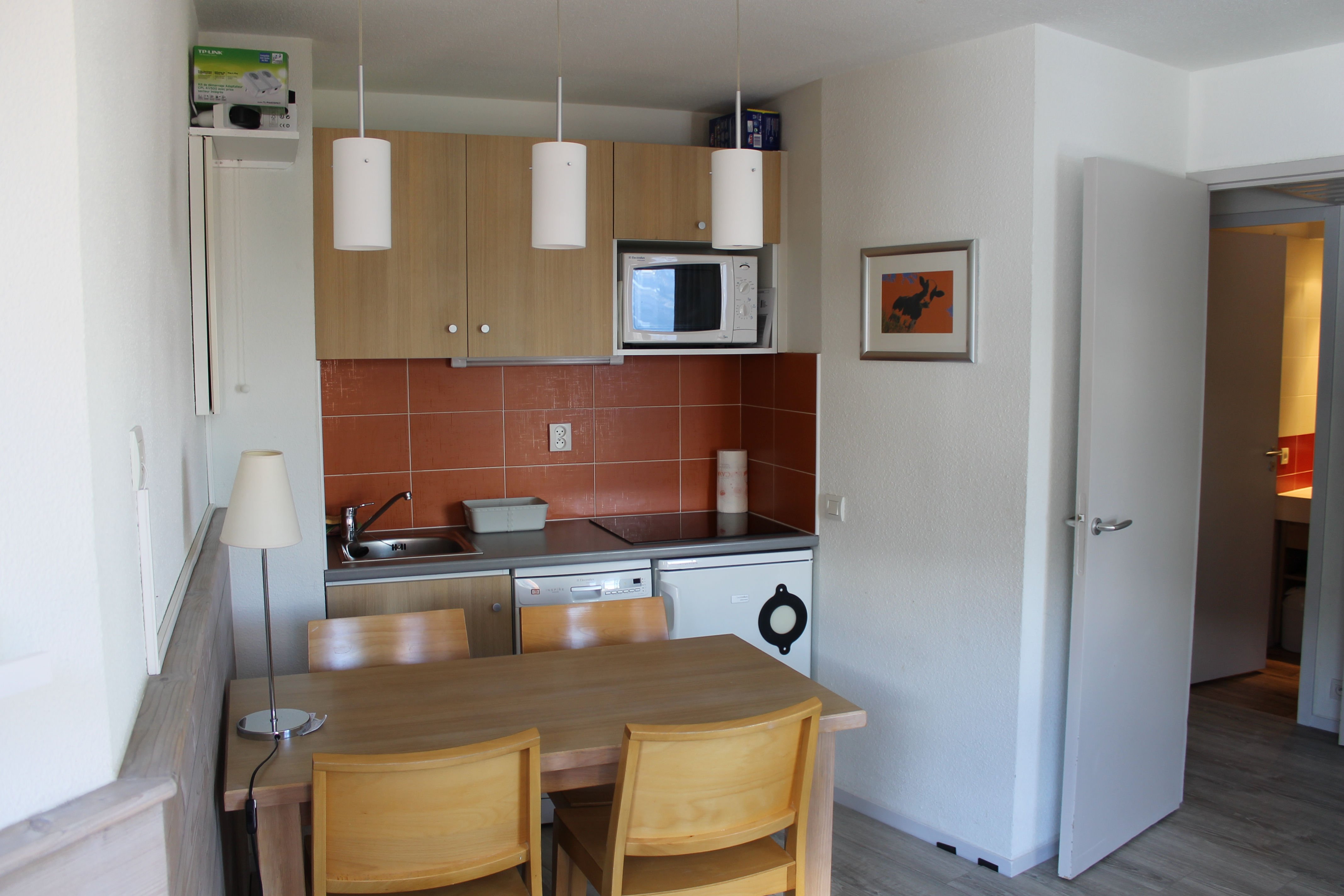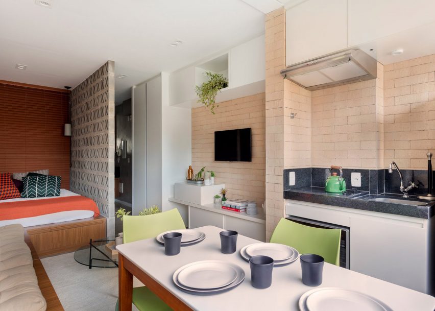 Las áreas de cocina y trabajo ocupan solo dos paredes.