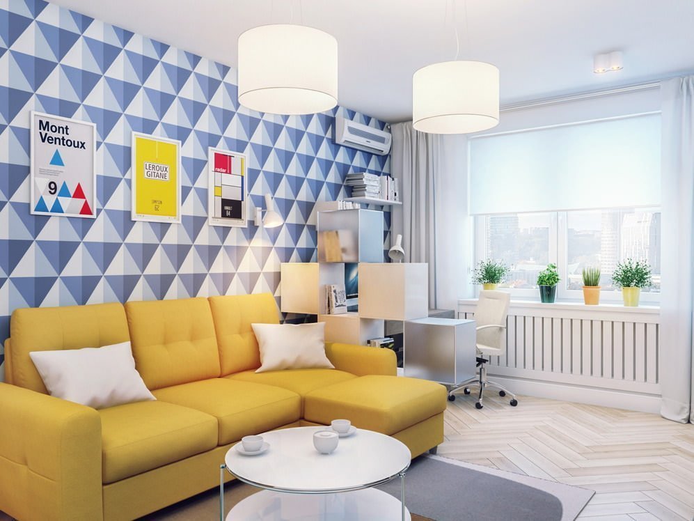 En una habitación pequeña no es deseable usar más de 3 colores primarios. Si en el departamento de metraje pequeño se utilizan muchos colores básicos, el interior se fragmentará y no podrá "formarse" orgánicamente en un todo. No se recomienda usar papel tapiz con un patrón grande que reduzca visualmente el tamaño de la habitación.