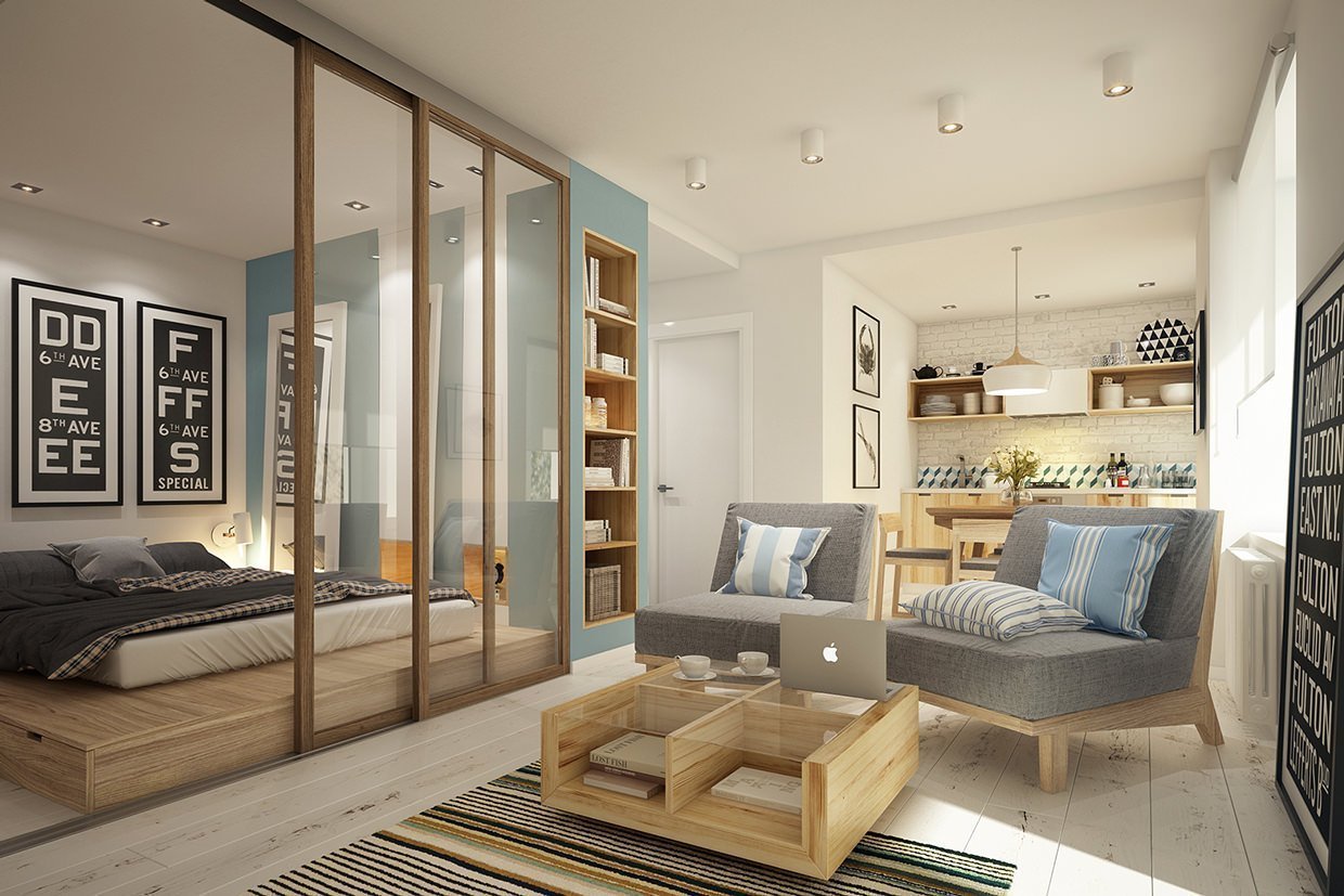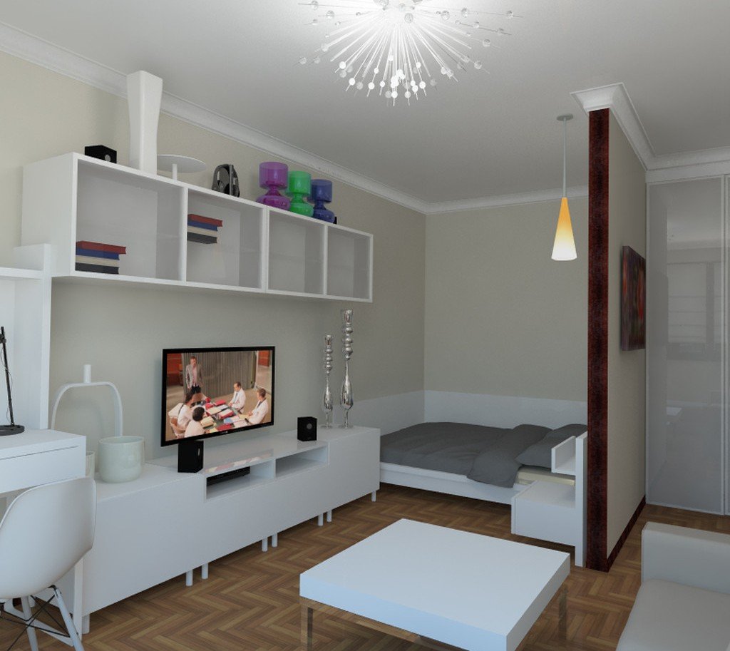 Hay varias variaciones populares de la expansión visual del espacio del apartamento. Para un método, es suficiente organizar correctamente los muebles y elegir los esquemas de color del interior, para otro será necesario deshacerse de las paredes y puertas adicionales. La opción que se convierta en la más adecuada depende de varios factores: la forma de la habitación (idealmente, si es rectangular), su tamaño, la cantidad establecida para estos fines. Los apartamentos de una habitación suelen ser comprados por familias sin hijos o solteros. En este caso, la mejor opción sería una remodelación clásica: la demolición de la pared entre la cocina y el salón, por lo que el panel odnushka se convierte en un estudio. Menos del estudio: no hay un solo rincón aislado. Incluso si una persona está en la cocina y la segunda está en la sala de estar junto al televisor, ambas personas siempre están, de hecho, en la misma habitación, lo que a veces puede causar malestar moral.