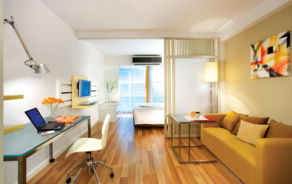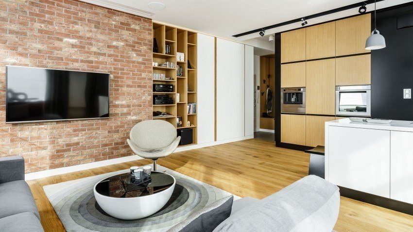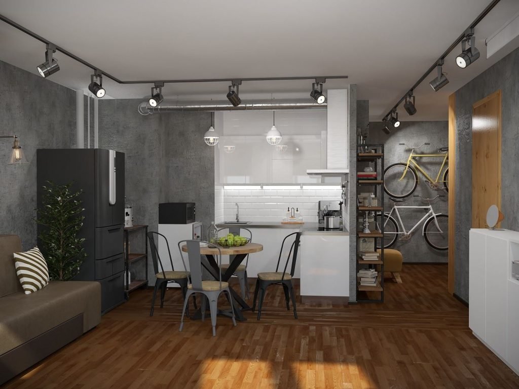 La demolición de la pared entre el pasillo y la cocina es la forma más fácil y, al mismo tiempo, la más difícil de expandir el espacio del odnushka de 36 metros. La simplicidad radica en la ausencia de la necesidad de crear variaciones para adaptarse a todo en una habitación pequeña, y la complejidad está en el papeleo (la reurbanización debe ejecutarse en el BTI). La demolición de la pared no agregará metros cuadrados (si no está soportando, es lo suficientemente delgada), pero hará que sea más fácil colocar muebles, visualmente habrá más espacio. Este método es adecuado para parejas jóvenes sin hijos o personas no familiares, después de la reurbanización, el apartamento se convierte en un estudio. El apartamento estudio es elegante, práctico y moderno.
