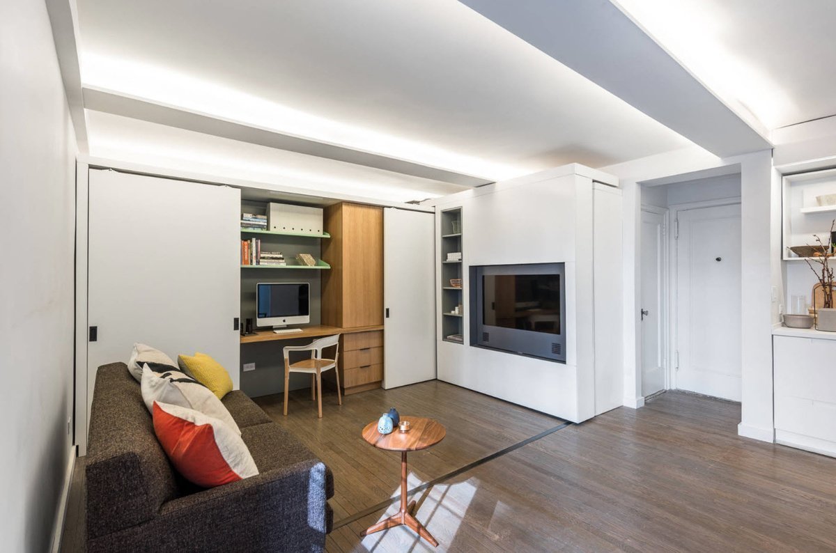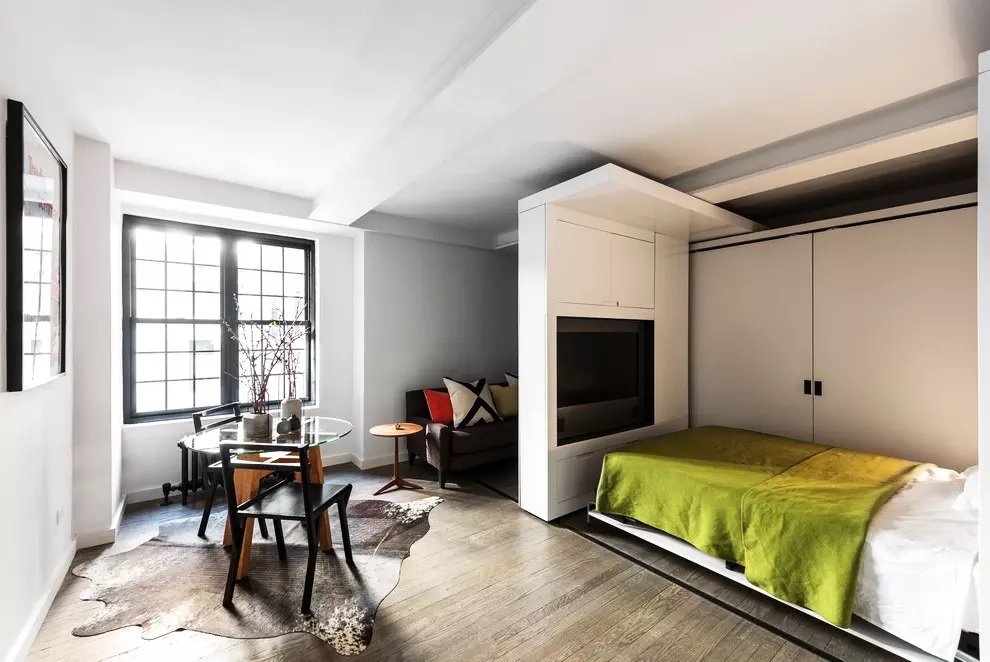 Los diseñadores de interiores han estado utilizando durante mucho tiempo una forma de ahorrar espacio como muebles plegables o modulares. Un ejemplo es un sofá plegable: durante el día es un mueble común en la sala de estar, y por la noche, cuando se coloca, se convierte en una cama, transformando la habitación en un dormitorio. Para aquellos que no están ansiosos por colocar / doblar el sofá todos los días, se han inventado camas plegables. Por la tarde es un armario simple, y después del atardecer se abren sus alas y aparece una cama. Hay literas plegables, una excelente opción para ahorrar metros cuadrados y organizar lugares para dormir para dos personas.Los mecanismos de las camas plegables son convenientes de usar: le permiten convertir la sala de estar en una habitación en cuestión de segundos, sin la necesidad de mover los muebles.