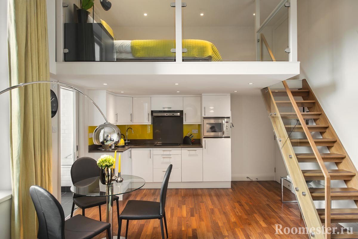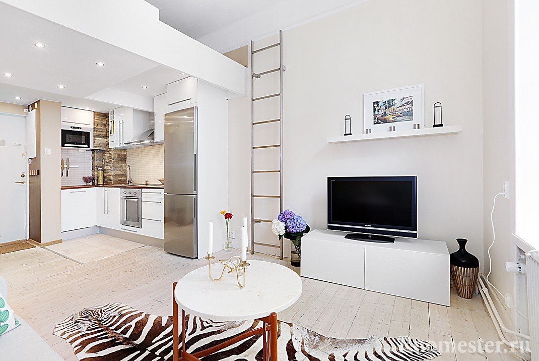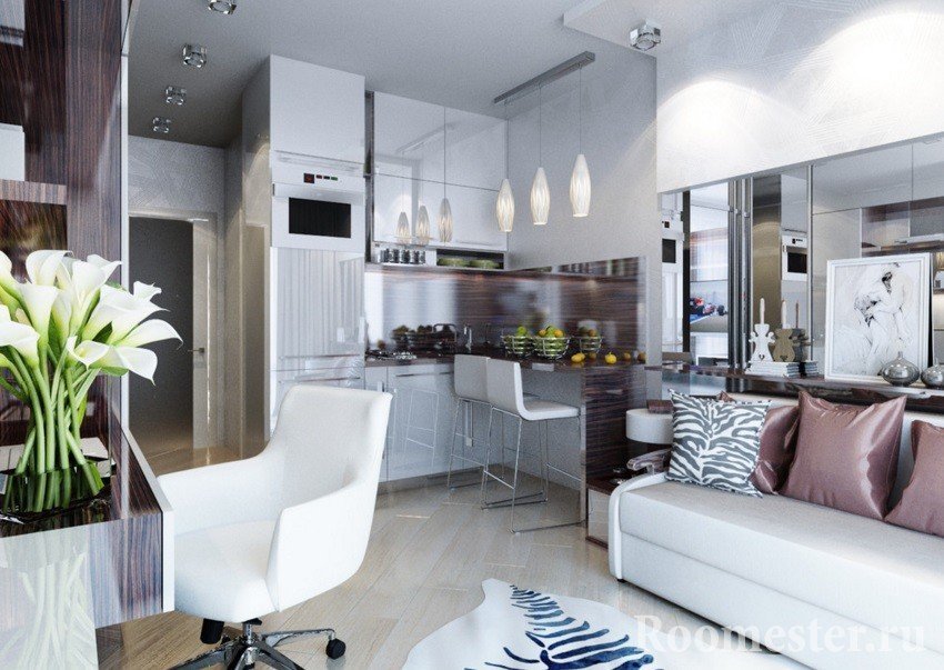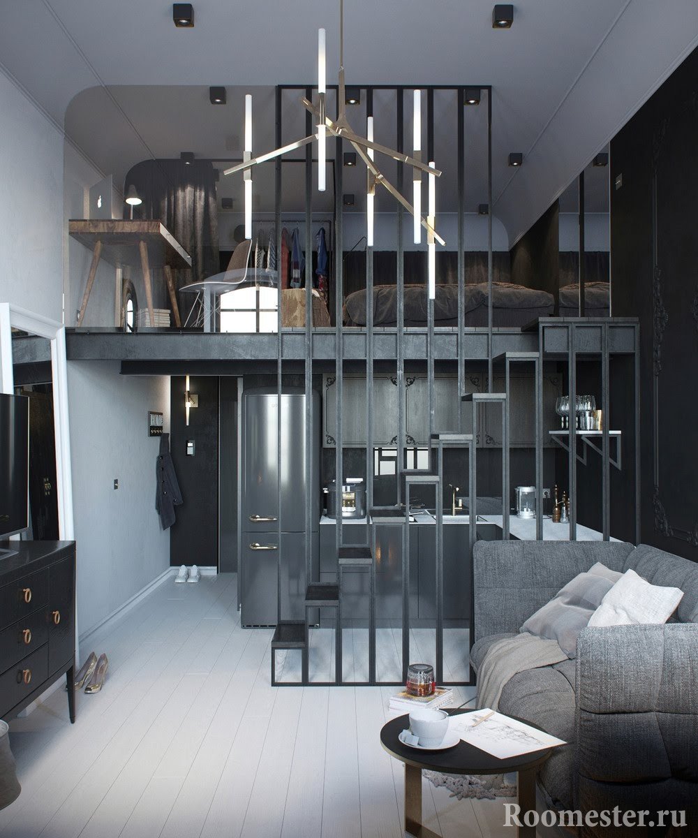 Los colores acromáticos con la adición de metal crearán un aspecto moderno y ligeramente futurista de un apartamento tipo estudio: alta tecnología, minimalismo. ¿Por qué las áreas urbanas populares son buenas para espacios pequeños y qué ideas deben considerarse para su uso?