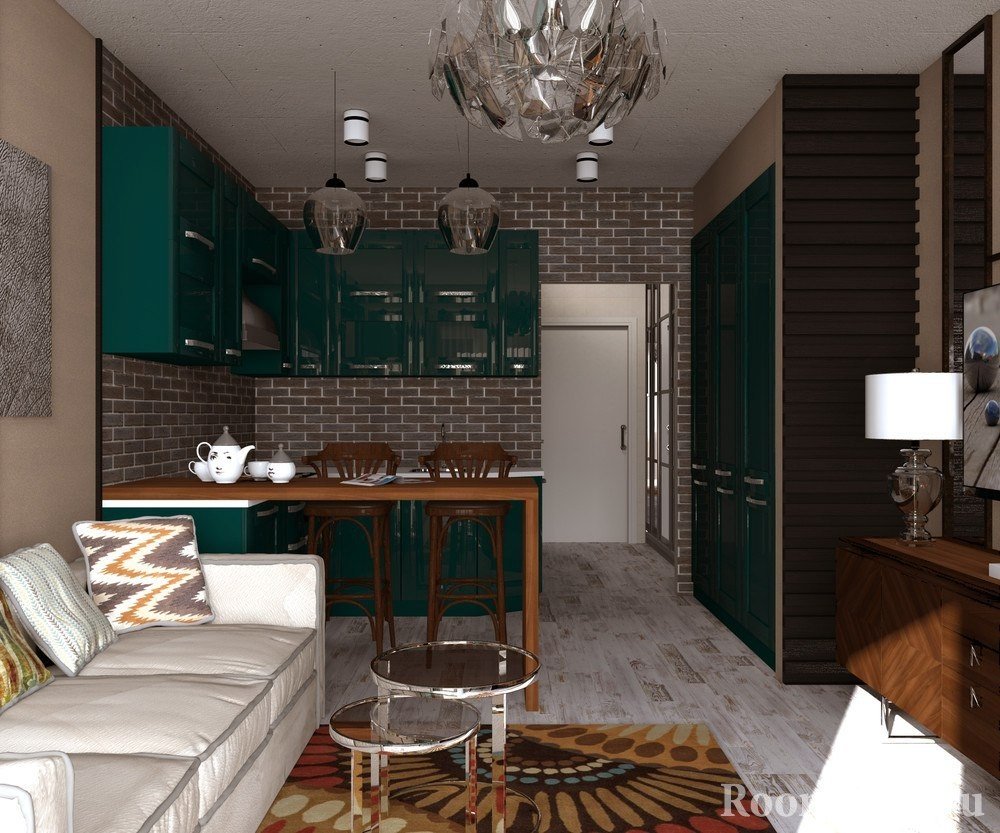 Si le gusta el cambio, entonces usar acentos de colores para elementos interiores como textiles, alfombras, carteles es la mejor manera de transformar un diseño de estudio de 20 m sin una revisión importante según sea necesario.