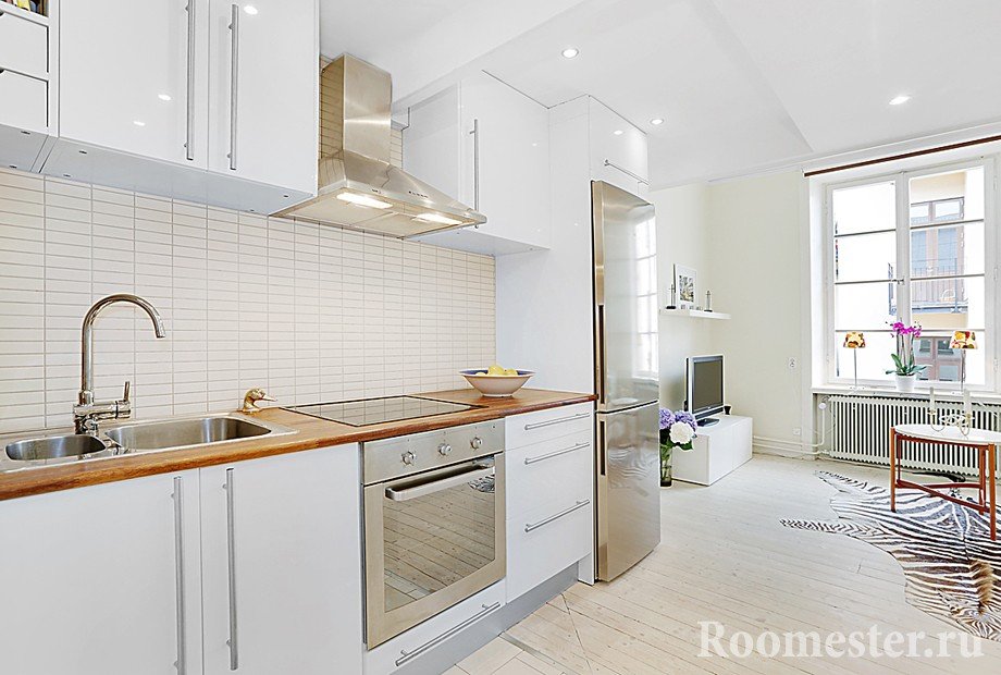 Las fachadas absolutamente aburridas anulan la idea de tradicionalidad, convirtiéndose en parte de la arquitectura. Son ideales para el concepto de minimalismo, preferidos para el diseño de un conjunto de cocina en un estudio en el área de 20 metros cuadrados.